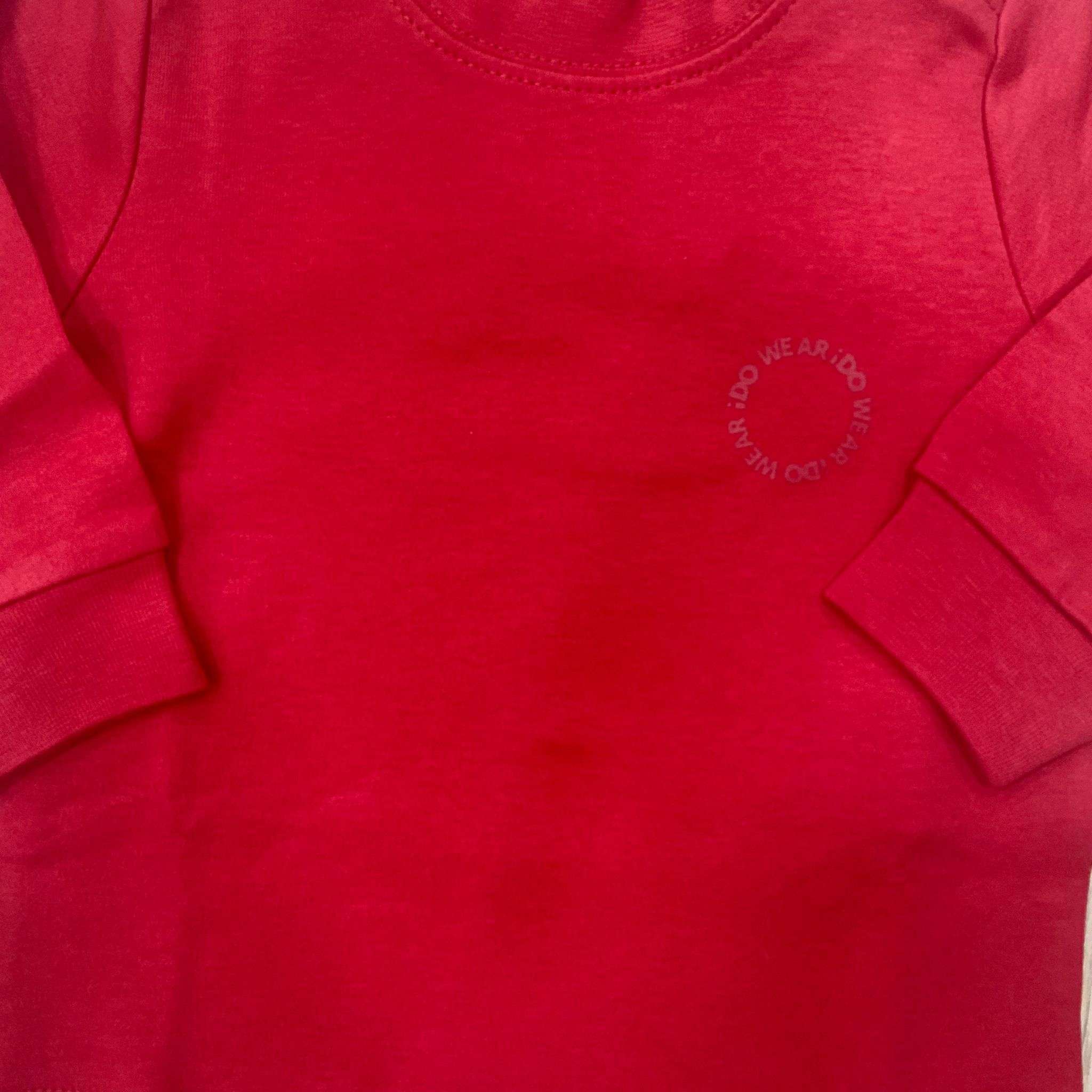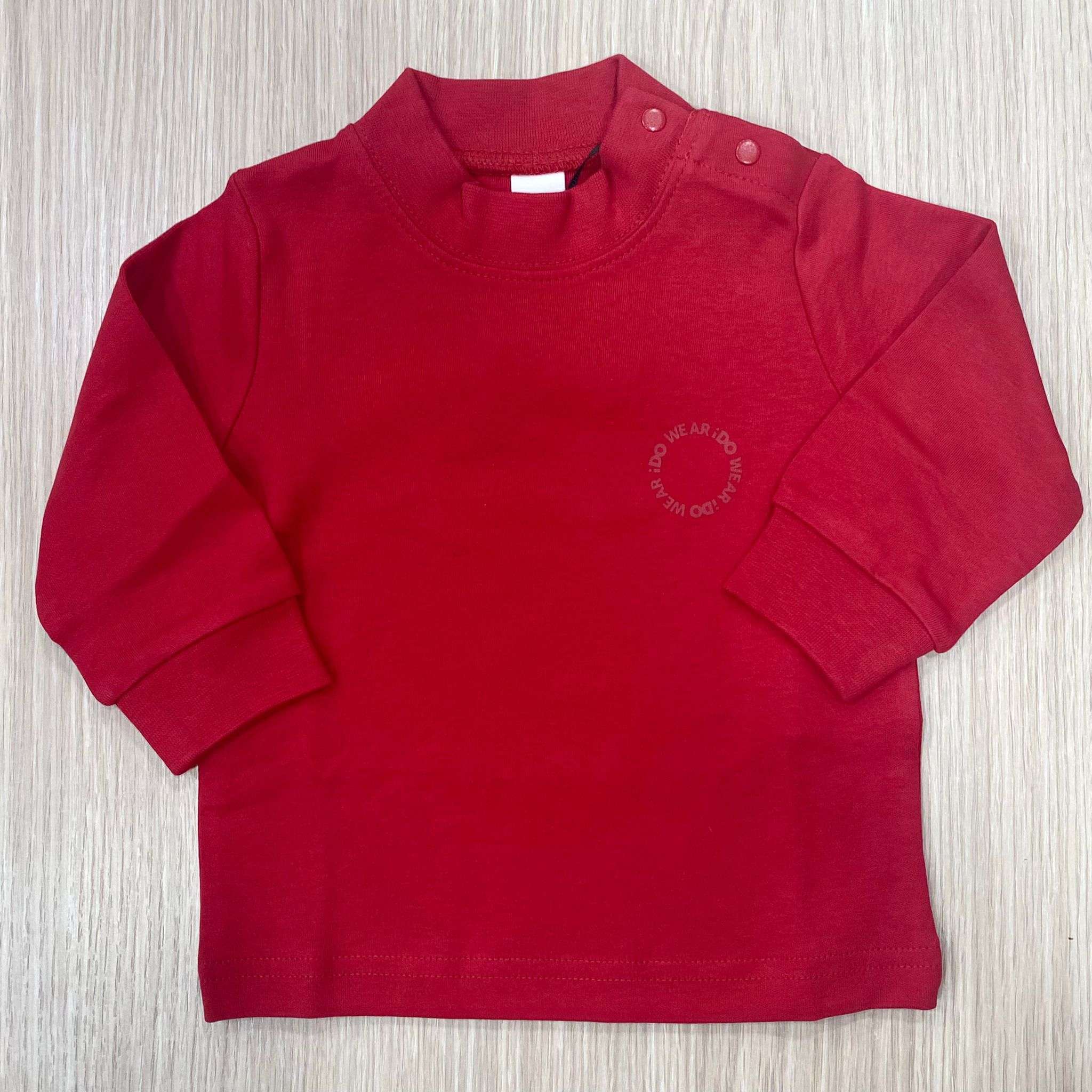 Maglia a lupetto bambino/a in caldo cotone, di colore rosso, con stampa di scritta.