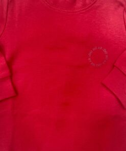 Maglia a lupetto bambino/a in caldo cotone, di colore rosso, con stampa di scritta.