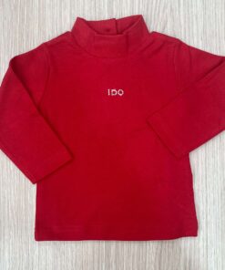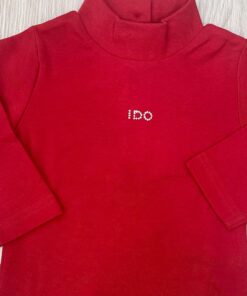 Maglia a lupetto bambino/a in caldo cotone, di colore rosso, con logo I DO in swarovski.