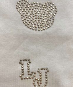 Maglia bambina in cotone, di colore ecrù e applicazione di strass.