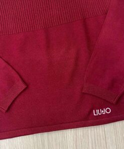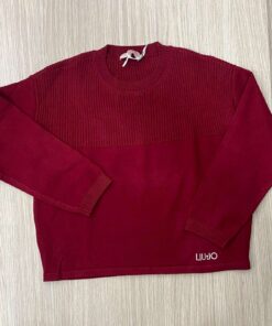 Maglia bambina/ragazza in caldo tessuto, di colore bordeaux, con scritta LIU•JO ricamata di colore bianco.