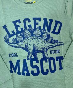 Maglia bambino in cotone, di colore verde, con stampa di colore blu.