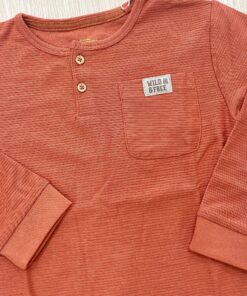 Maglia bambino in cotone, di colore dark orange, con dettaglio di taschino.