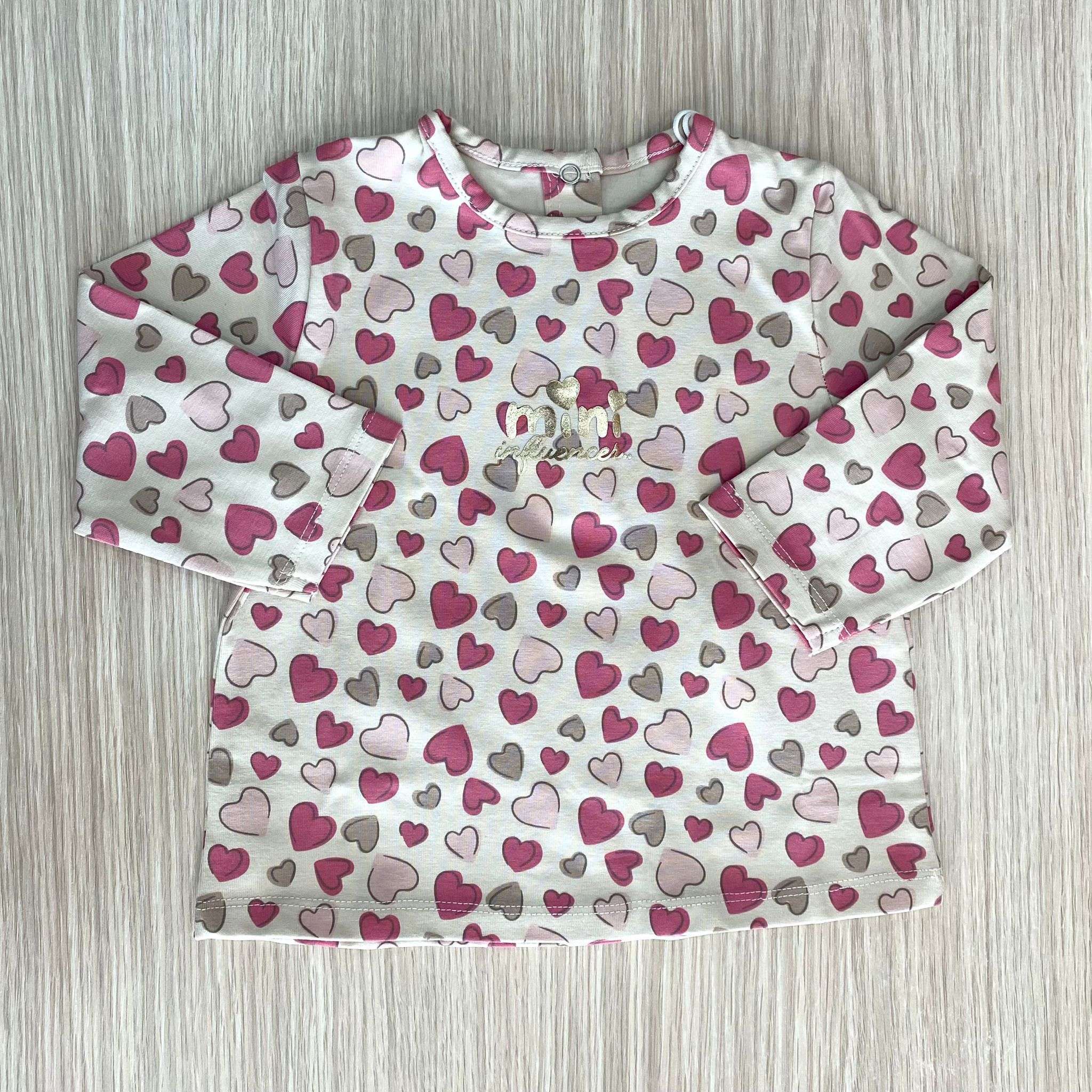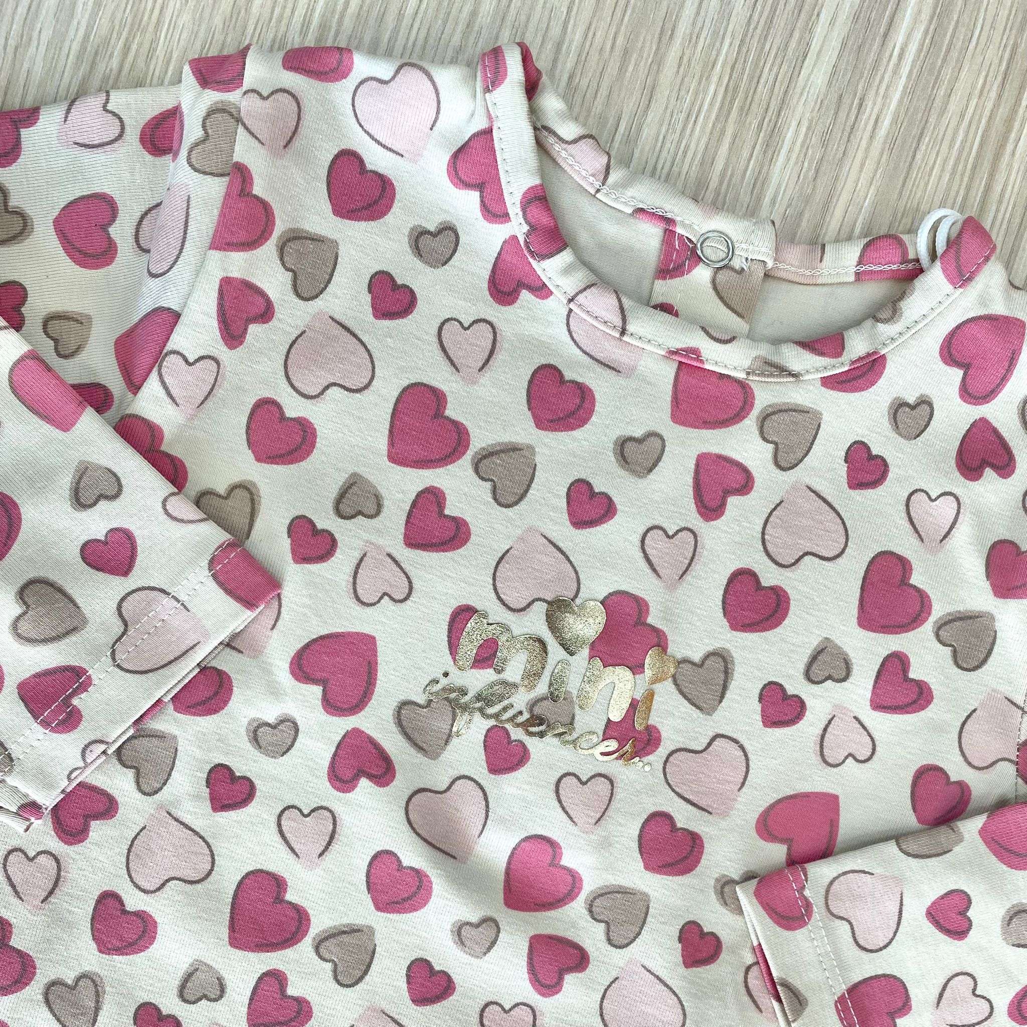 Maglia neonata/bambina in caldo cotone, di colore beige e rosa, con stampa di colore oro.