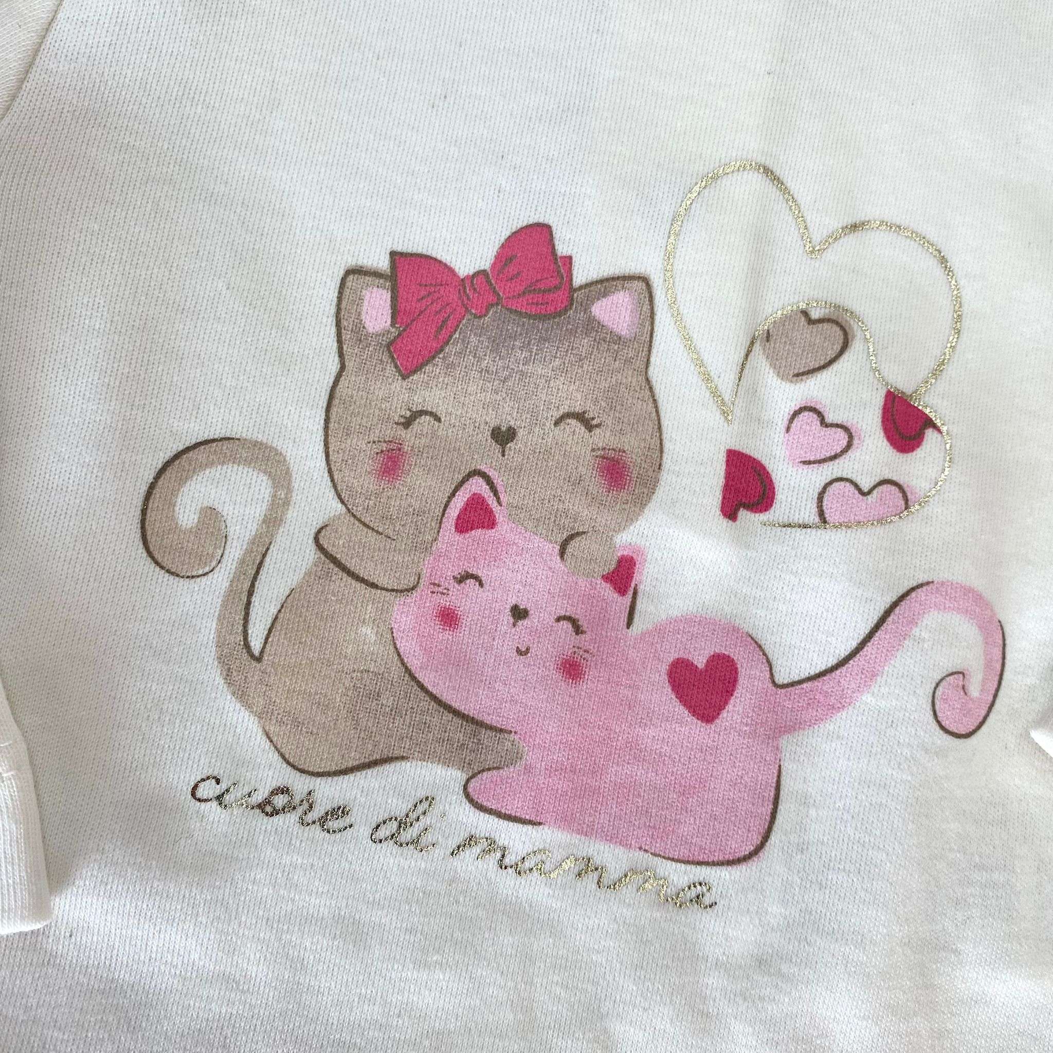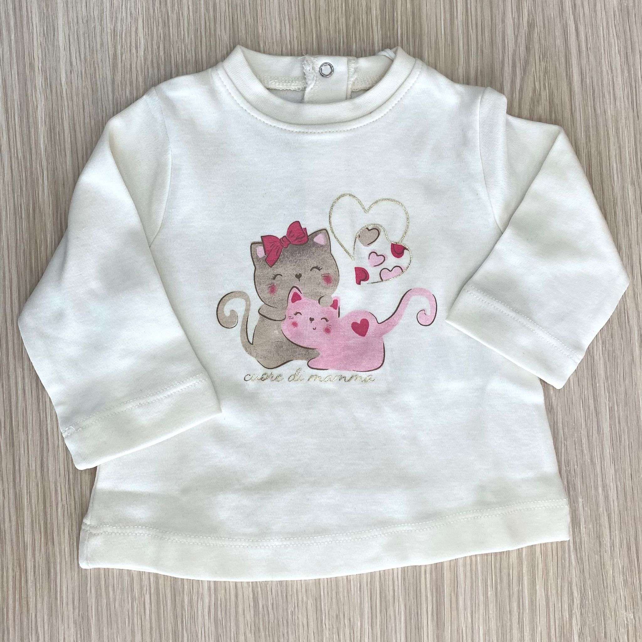 Maglia neonata/bambina in caldo cotone, di colore panna, con stampa di vari colori.