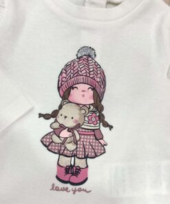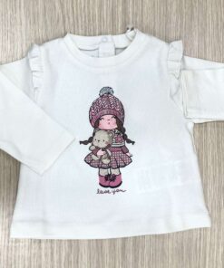 Maglia neonata/bambina in caldo cotone, di colore panna, con stampa di vari colori.