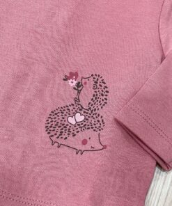 Maglia neonata/bambina in caldo cotone, di colore rosa antico, con dettaglio di disegno a stampa.