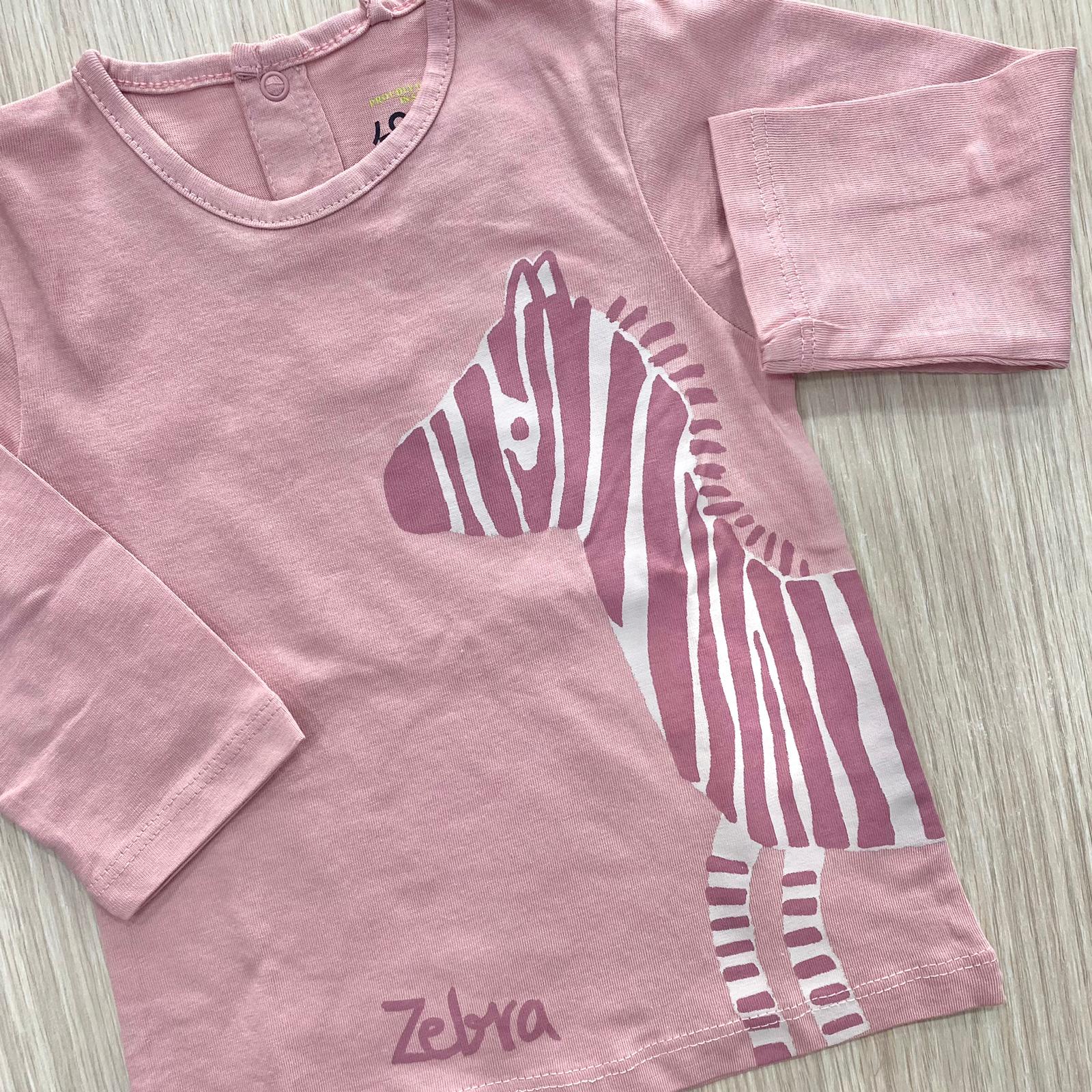 Maglia neonata/bambina in cotone, di colore rosa, con stampa di colore rosa scuro.