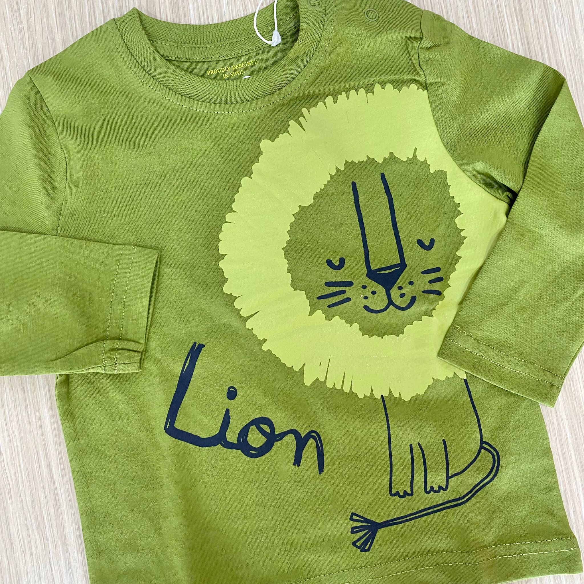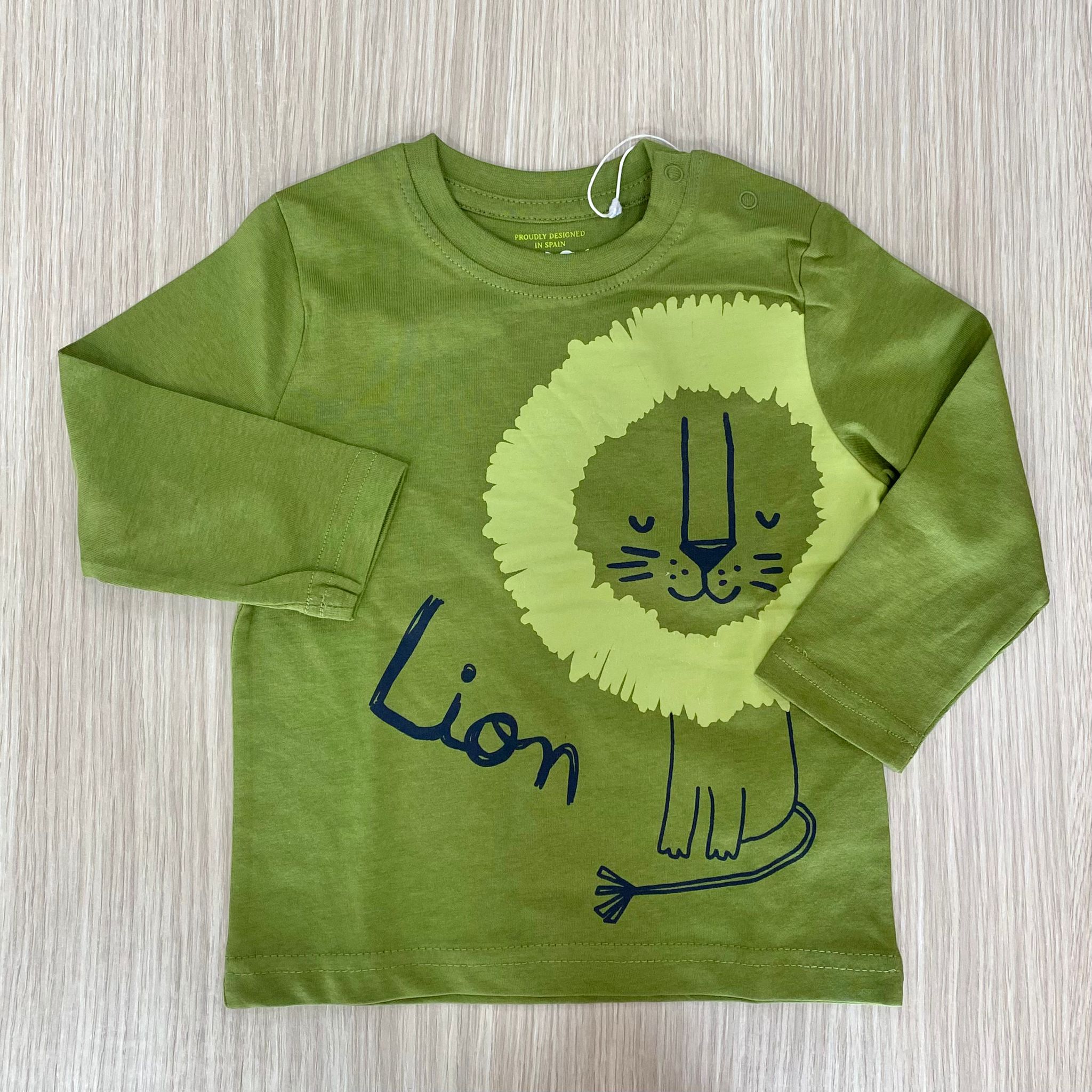 Maglia neonato/bambino in cotone, di colore verde, con stampa di colore nero e verde chiaro.
