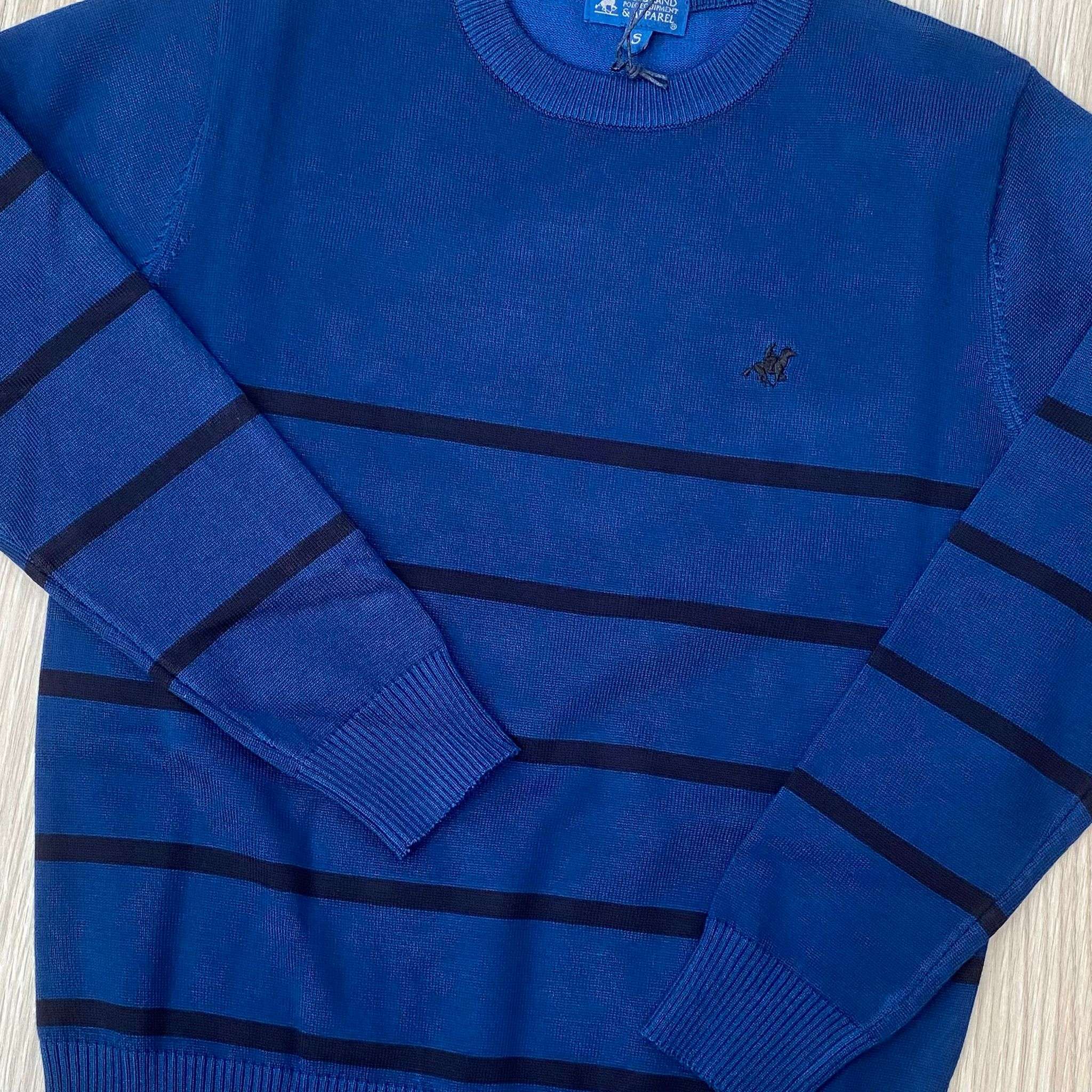 Maglioncino rasato bambino/ragazzo in caldo tessuto di colore blu e nero. Maglioncino con logo ricamato.