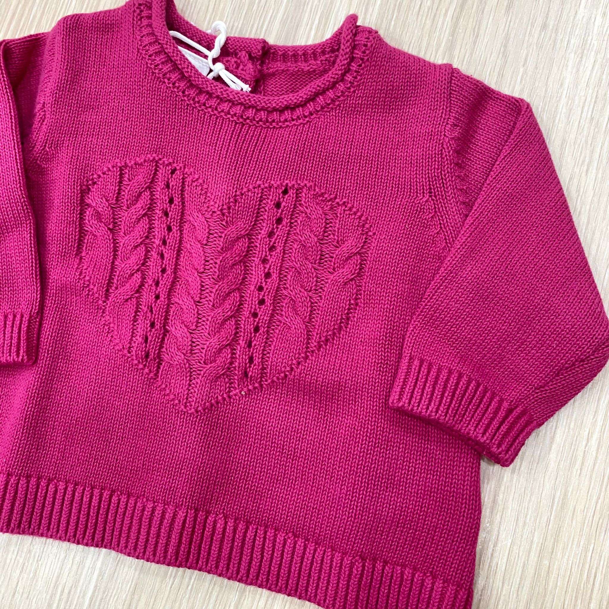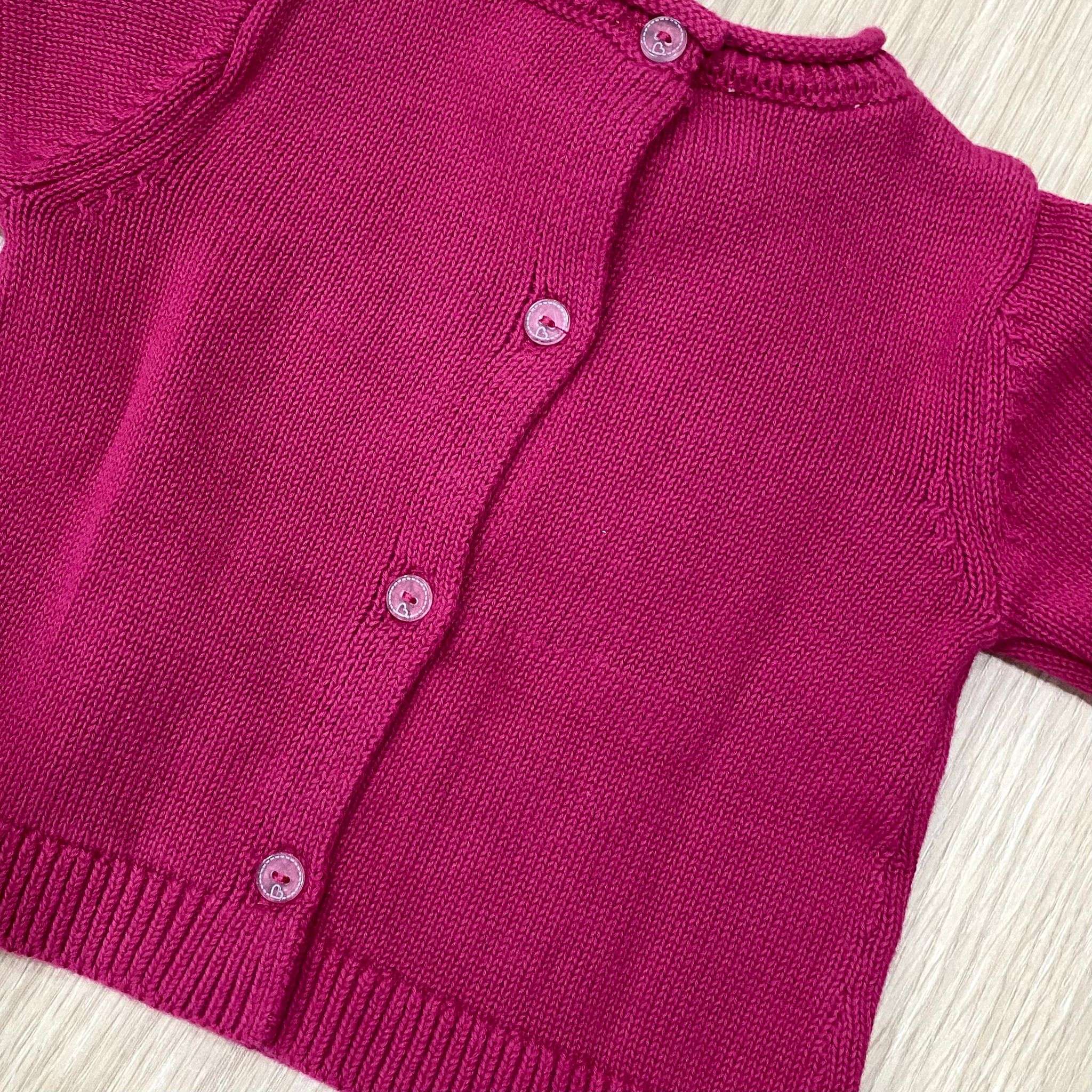 Maglioncino neonata/bambina in caldo cotone, di colore fucsia, con apertura sul retro di bottoncini.