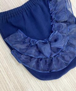 Mutandina copripannolino neonata/bambina da cerimonia/battesimale elegante, in cotone, di colore blu con meraviglioso tulle.