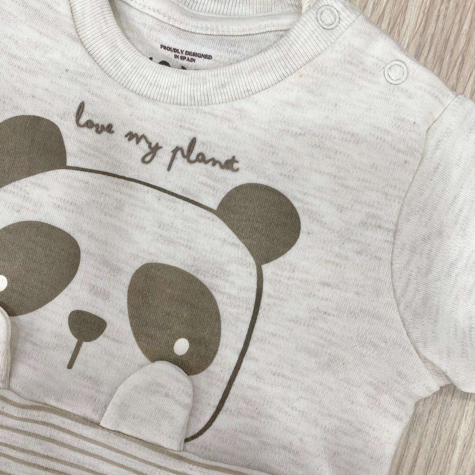 Pagliaccetto neonato/a/bambino/a in cotone, di colore ecrù, con scritta stampata.