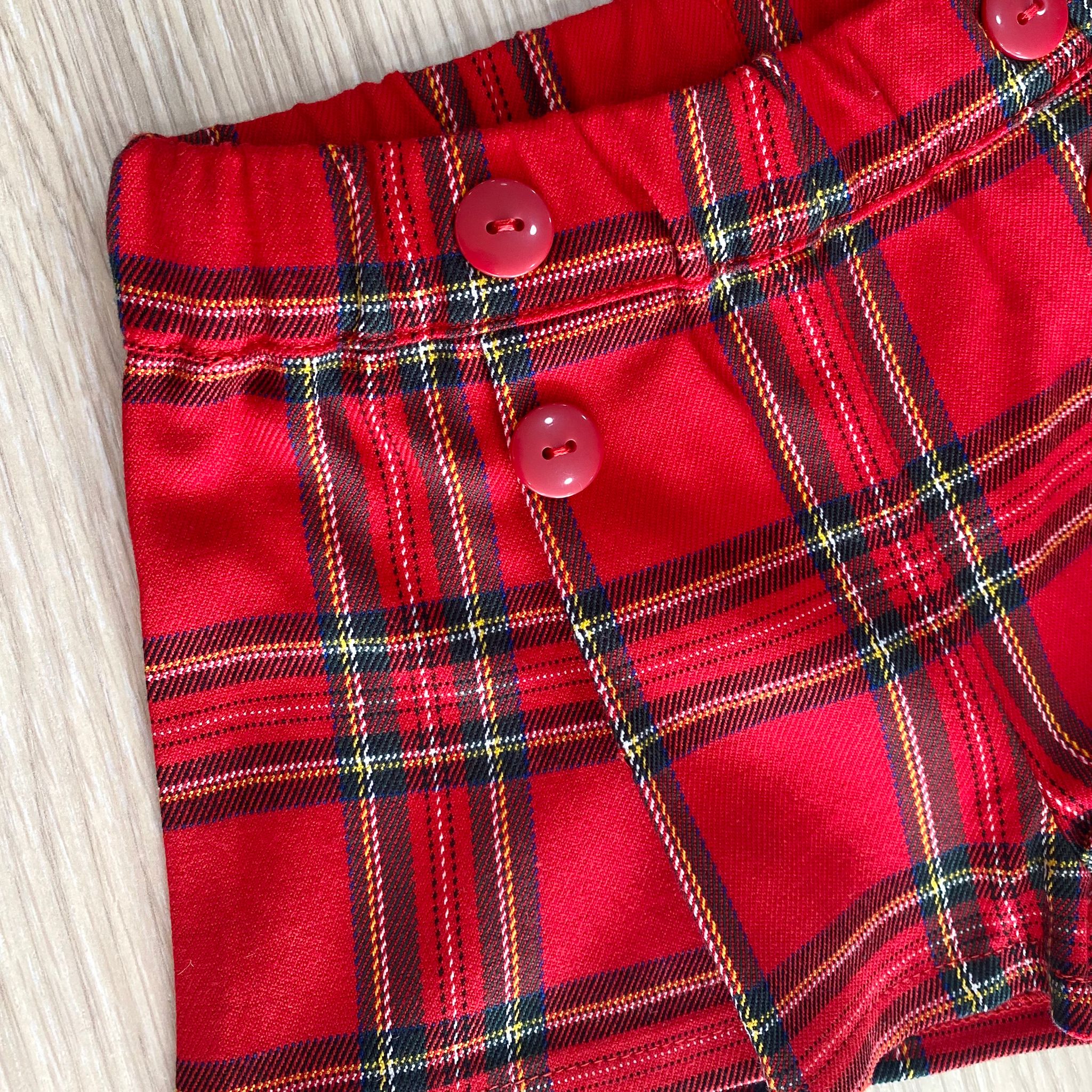 Pantaloncino scozzese neonata/bambina in caldo tessuto, di colore tartan, con dettaglio di bottoncini.