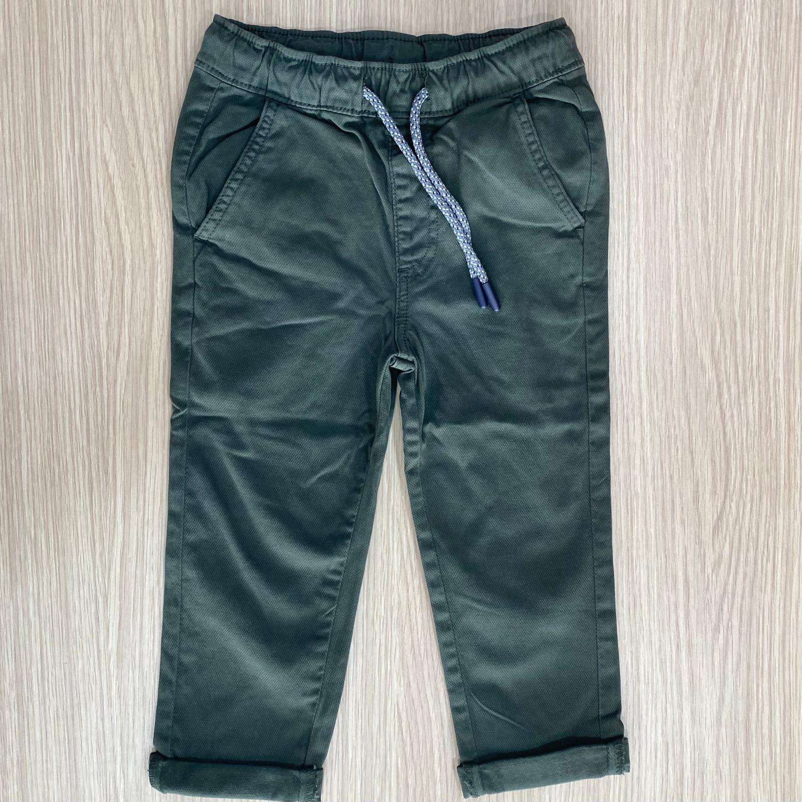 Pantalone bambino con elastico in vita e laccetto regolabile, di colore dark verde.