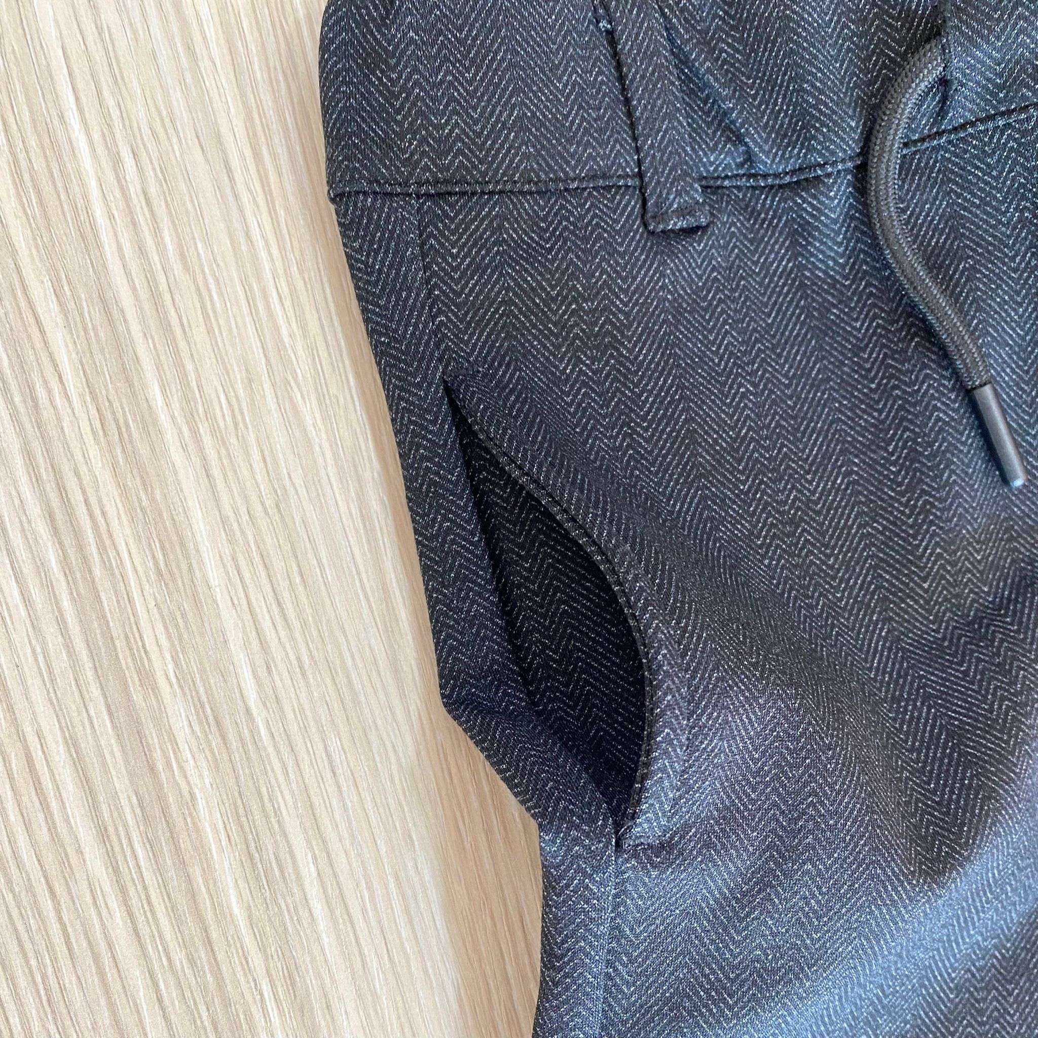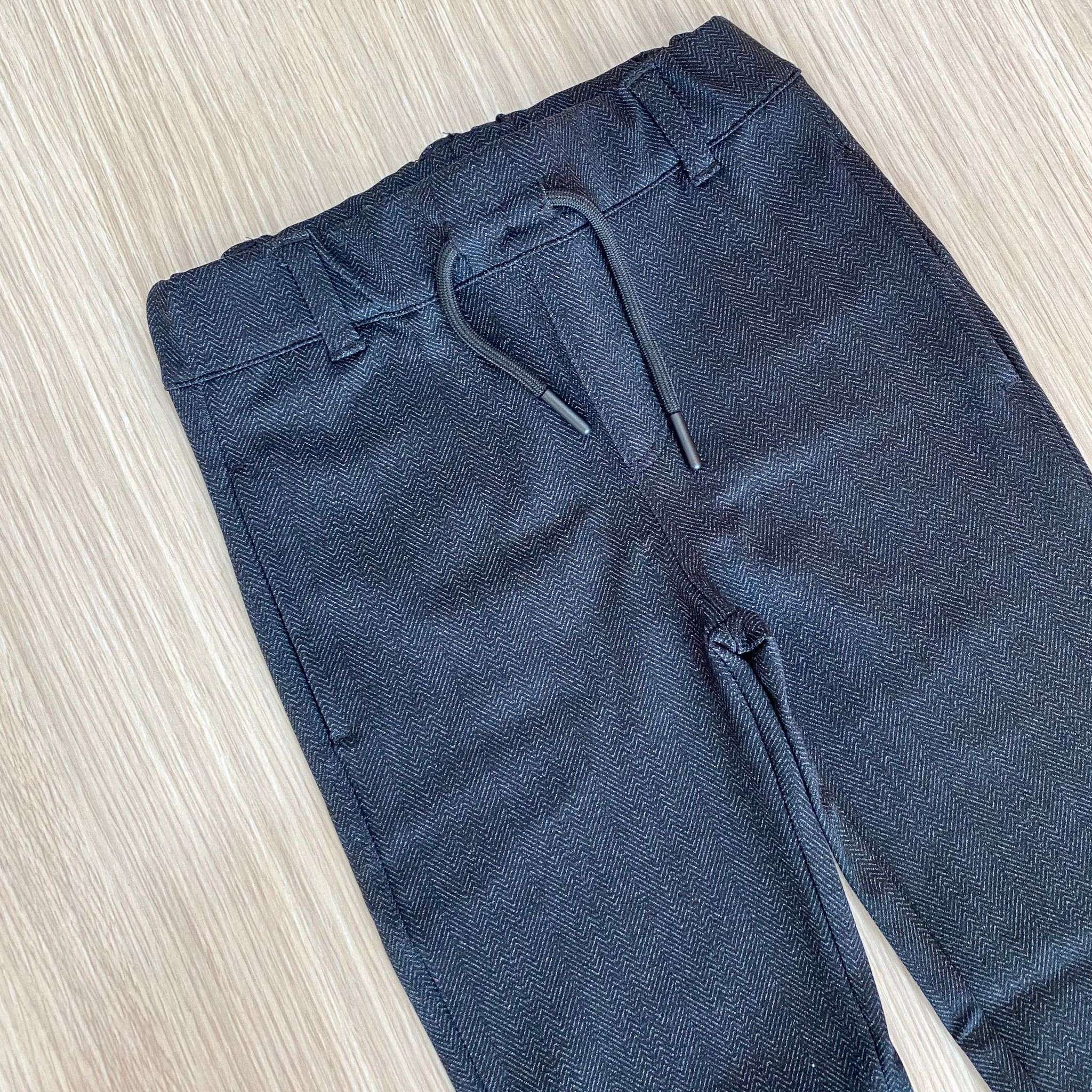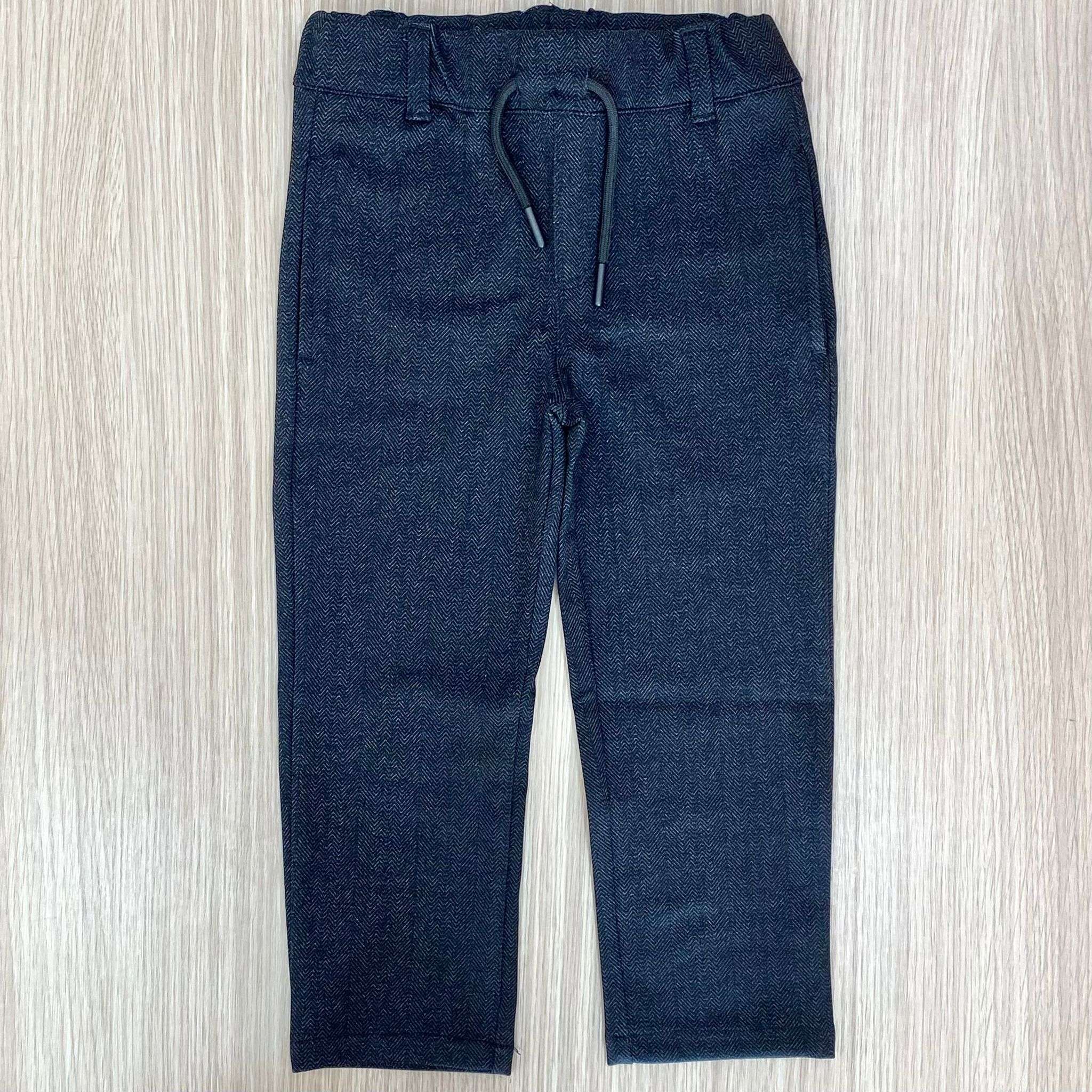 Pantalone bambino in caldo tessuto, di colore grigio scuro, con laccetto regolabile.