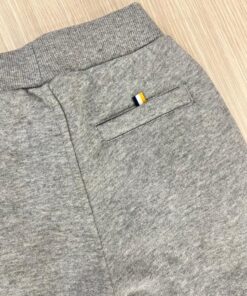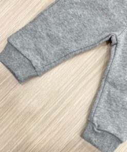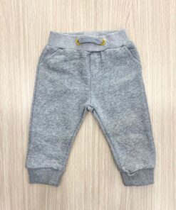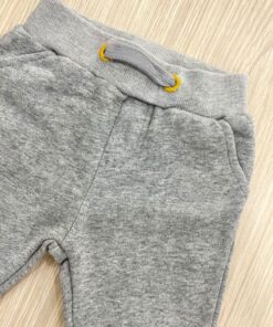Pantalone di tuta bambino in morbido cotone felpato, di colore grigio, con elastico regolabile in vita e tasche laterali.