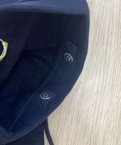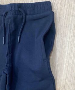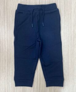 Pantalone di tuta bambino in cotone felpato, di colore blu, con laccetto ed elastico regolabile.