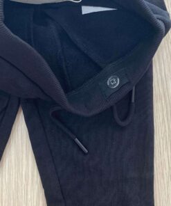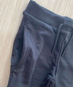 Pantalone di tuta bambino in cotone garzato, di colore nero, con elastico regolabile all’interno.