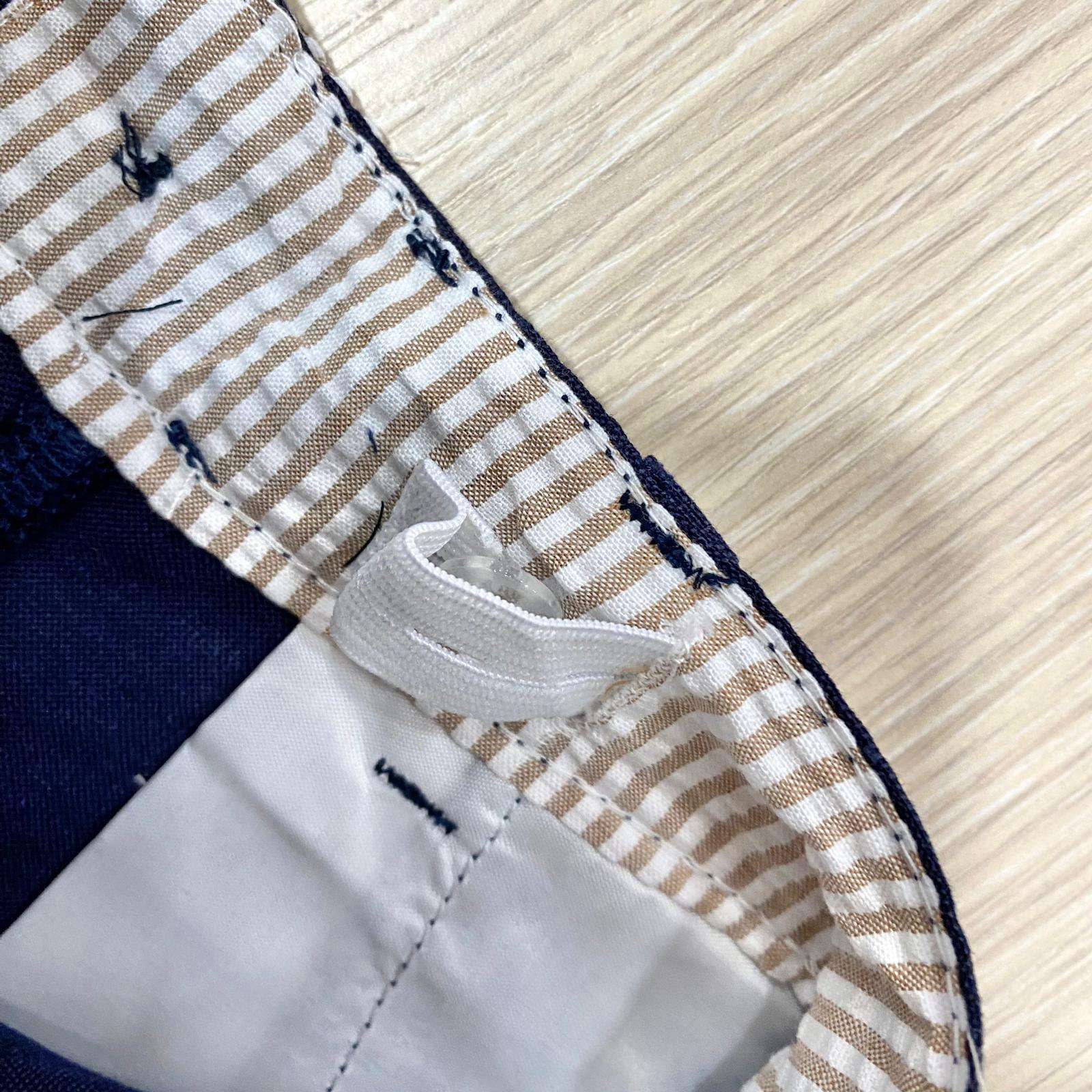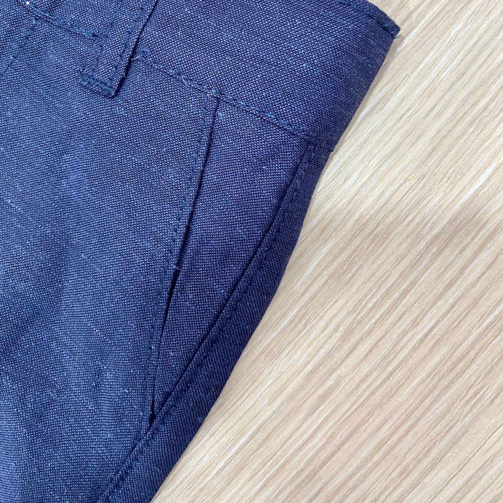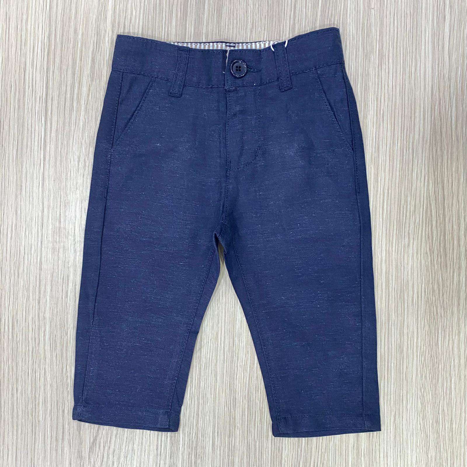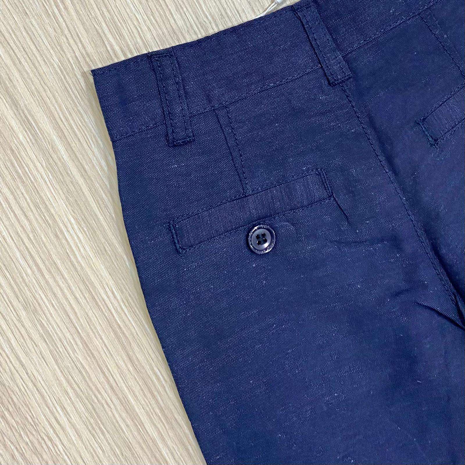 Pantalone bambino in lino, di colore blu, con tasche taglio all’americana.