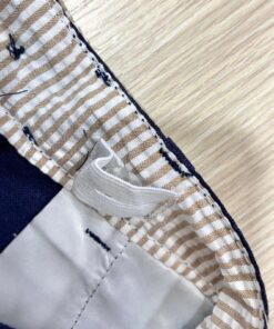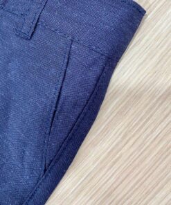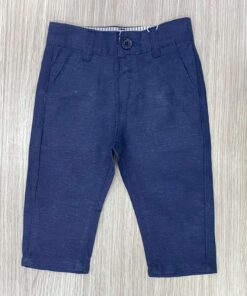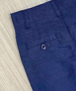 Pantalone bambino in lino, di colore blu, con tasche taglio all’americana.