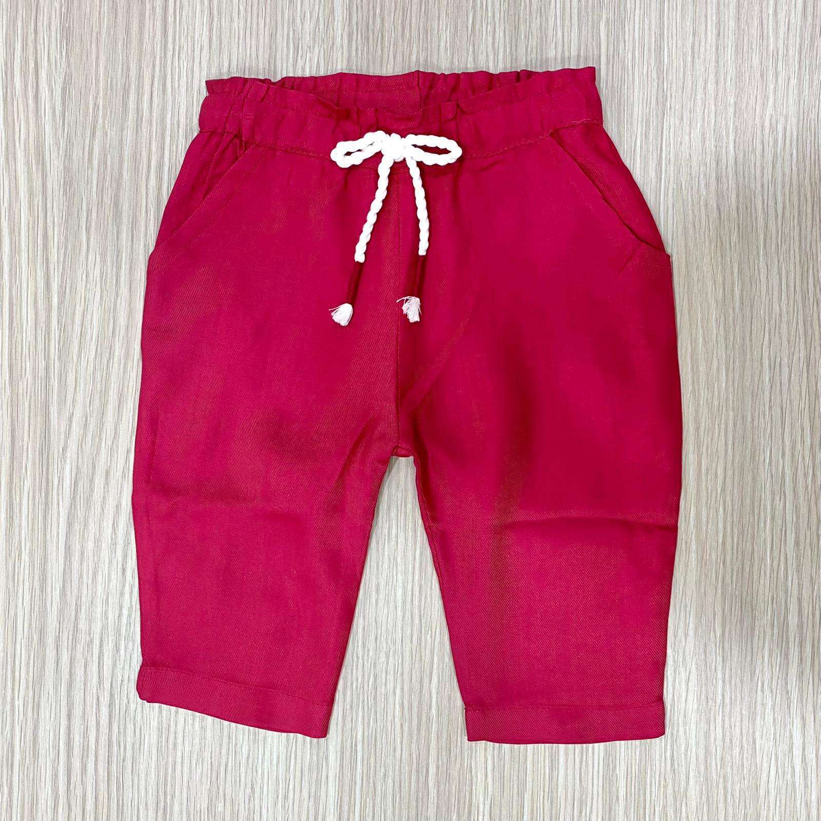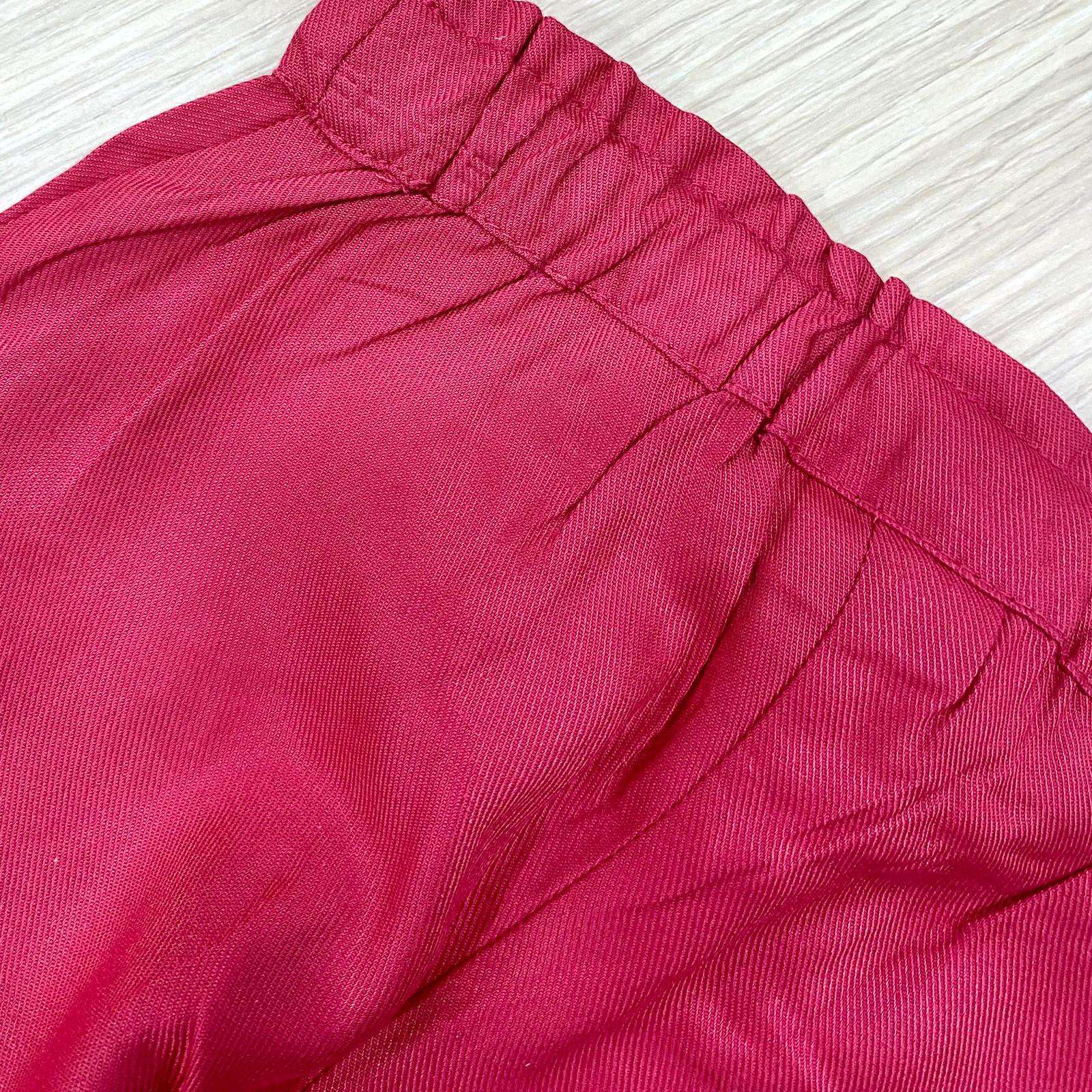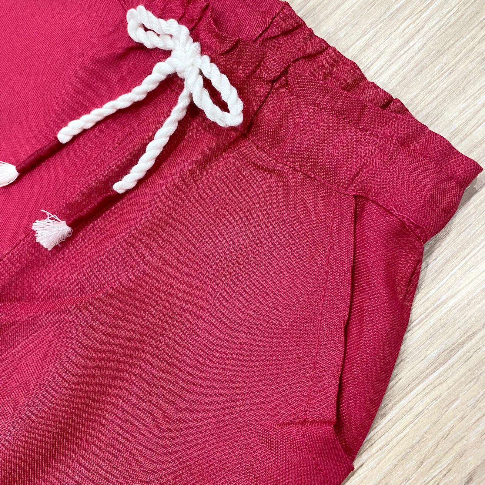 Pantalone neonata/bambina in fresca viscosa, di colore fucsia, con laccetto regolabile in vita.