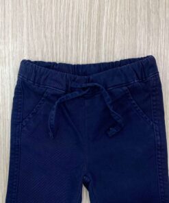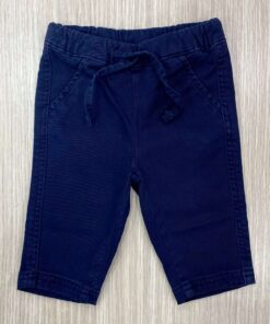 Pantalone neonato/bambino in caldo cotone, di colore blu, con finte tasche all’americana. Pantalone con laccetto regolabile.