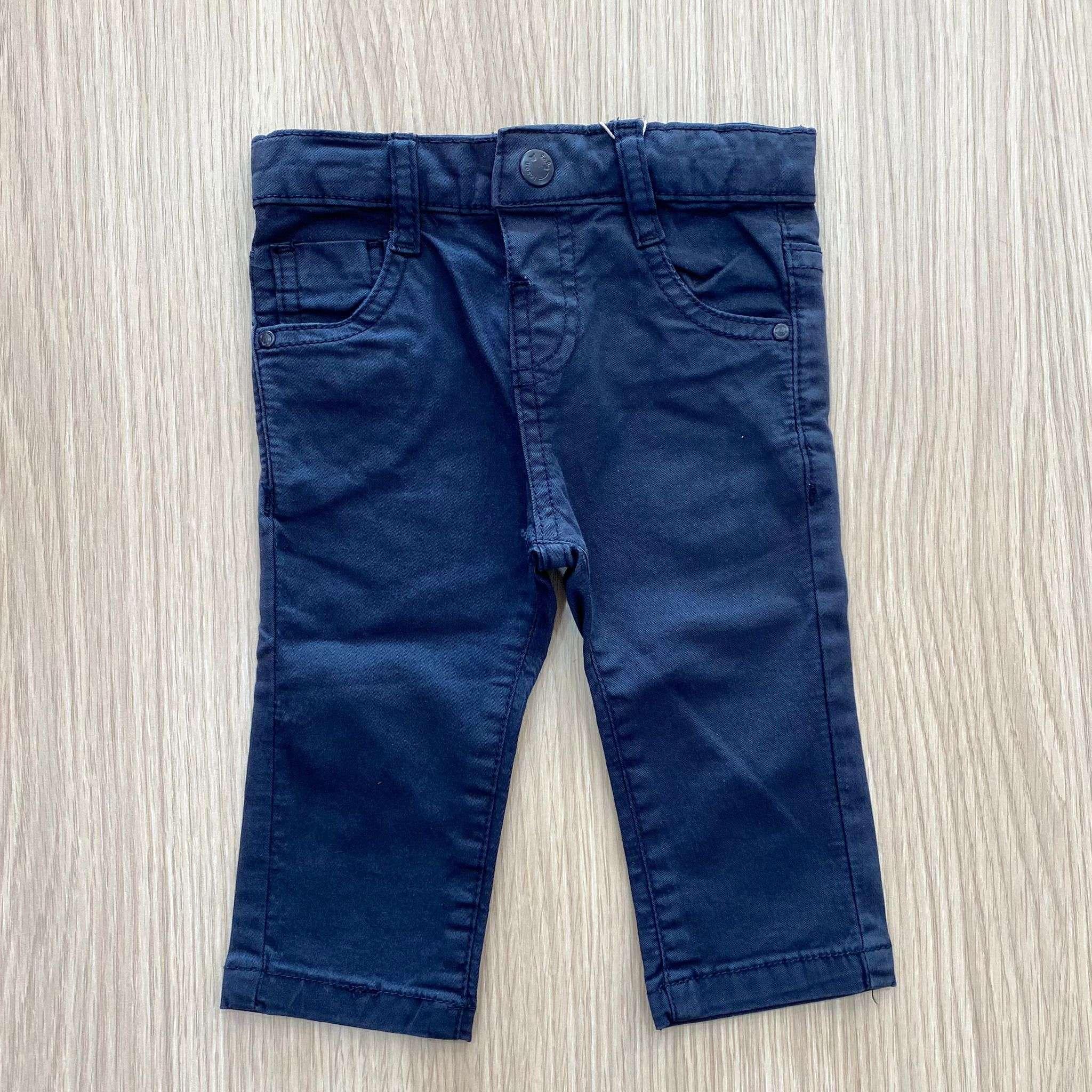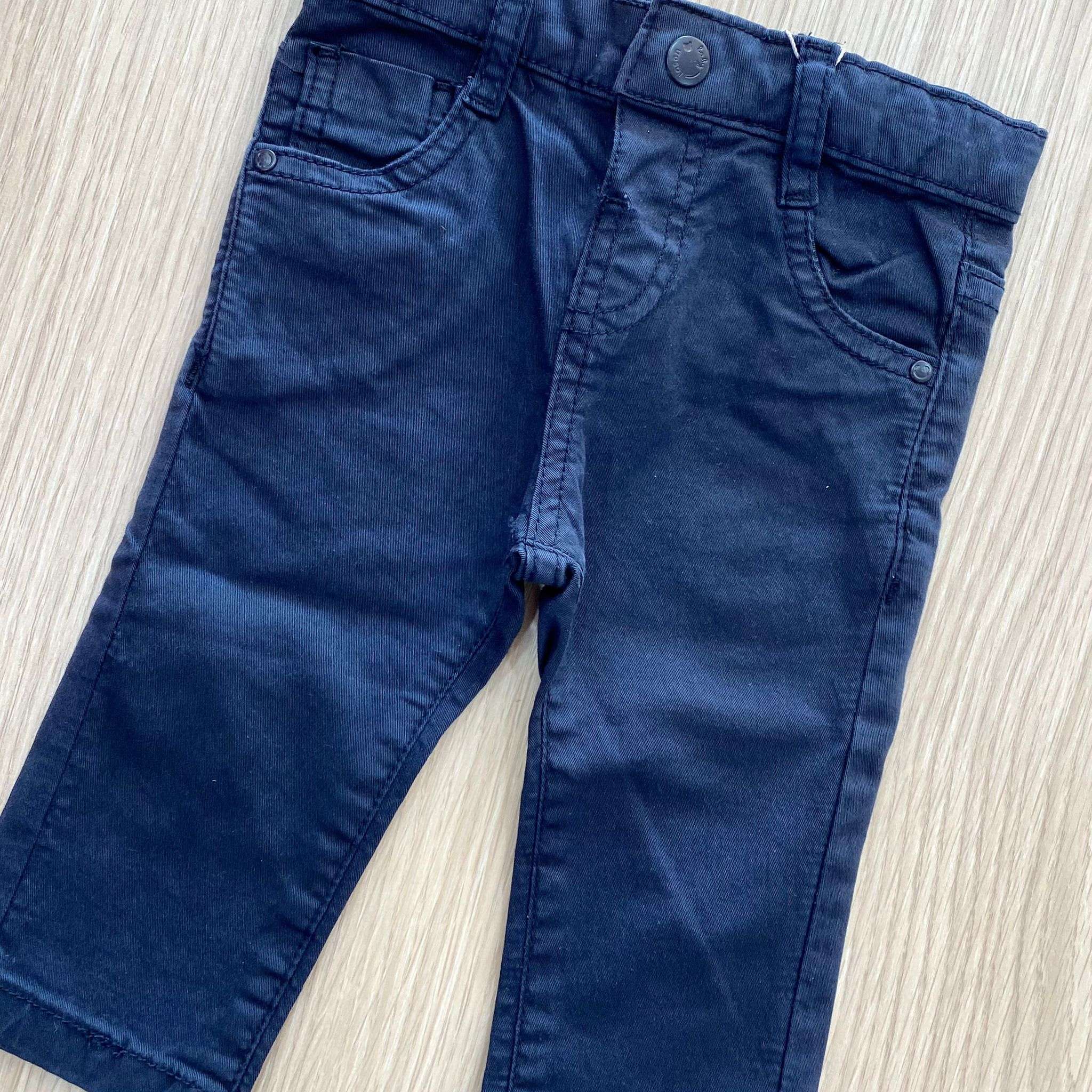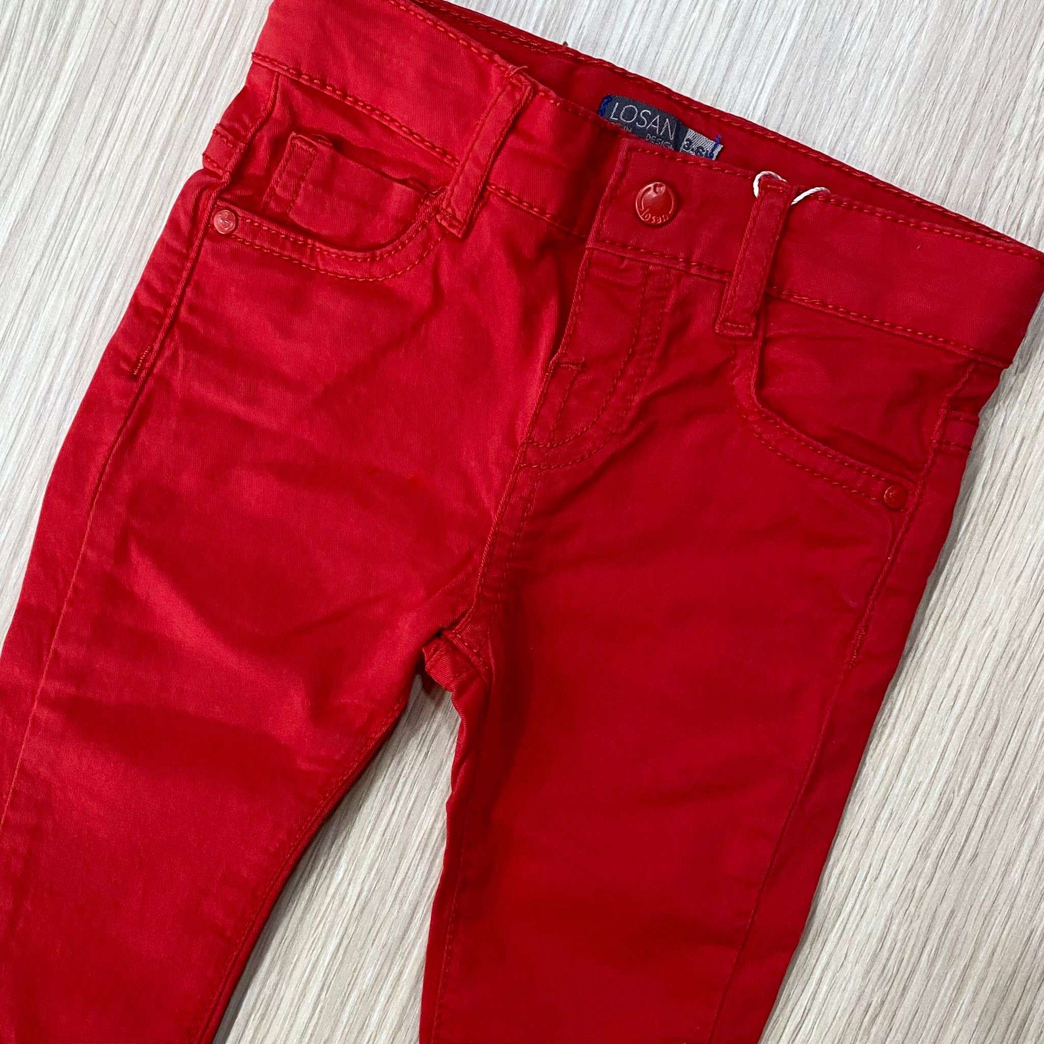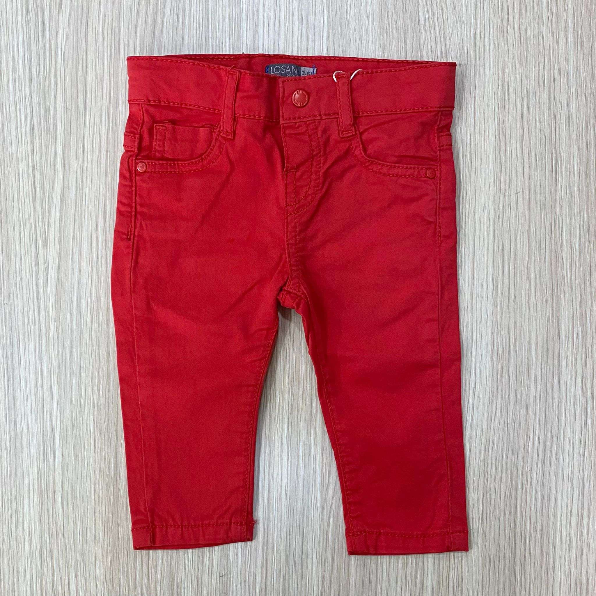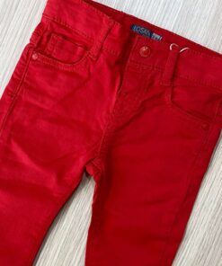 Pantalone neonato/bambino cinque tasche in cotone di colore rosso o blu scuro.