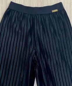 Pantalone bambina plissettato in velluto, di colore nero, con fodera anti appiccico. Pantalone con elastico in vita e dettaglio di logo LIU•JO.