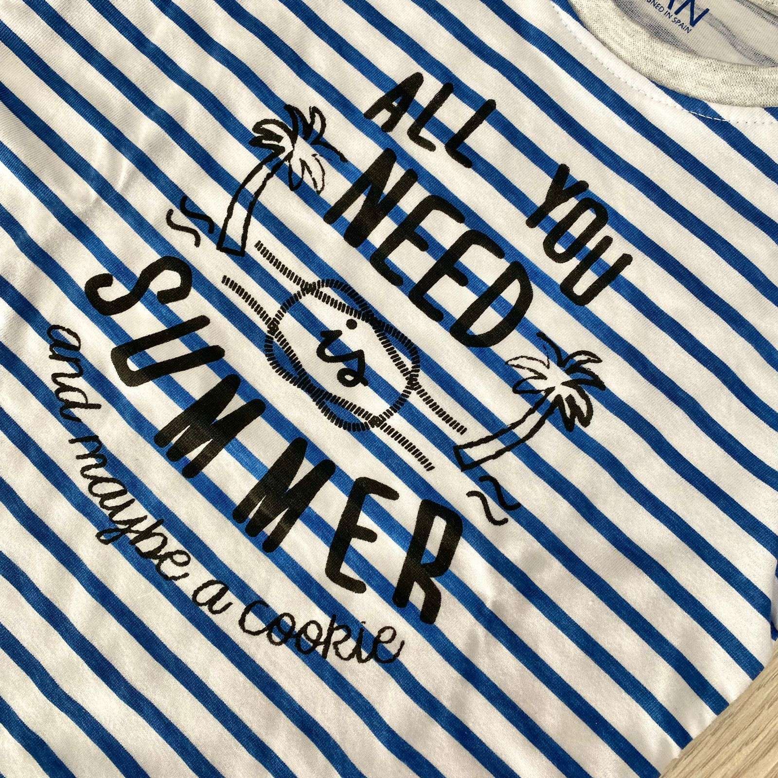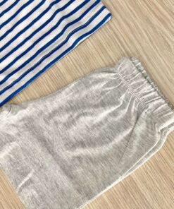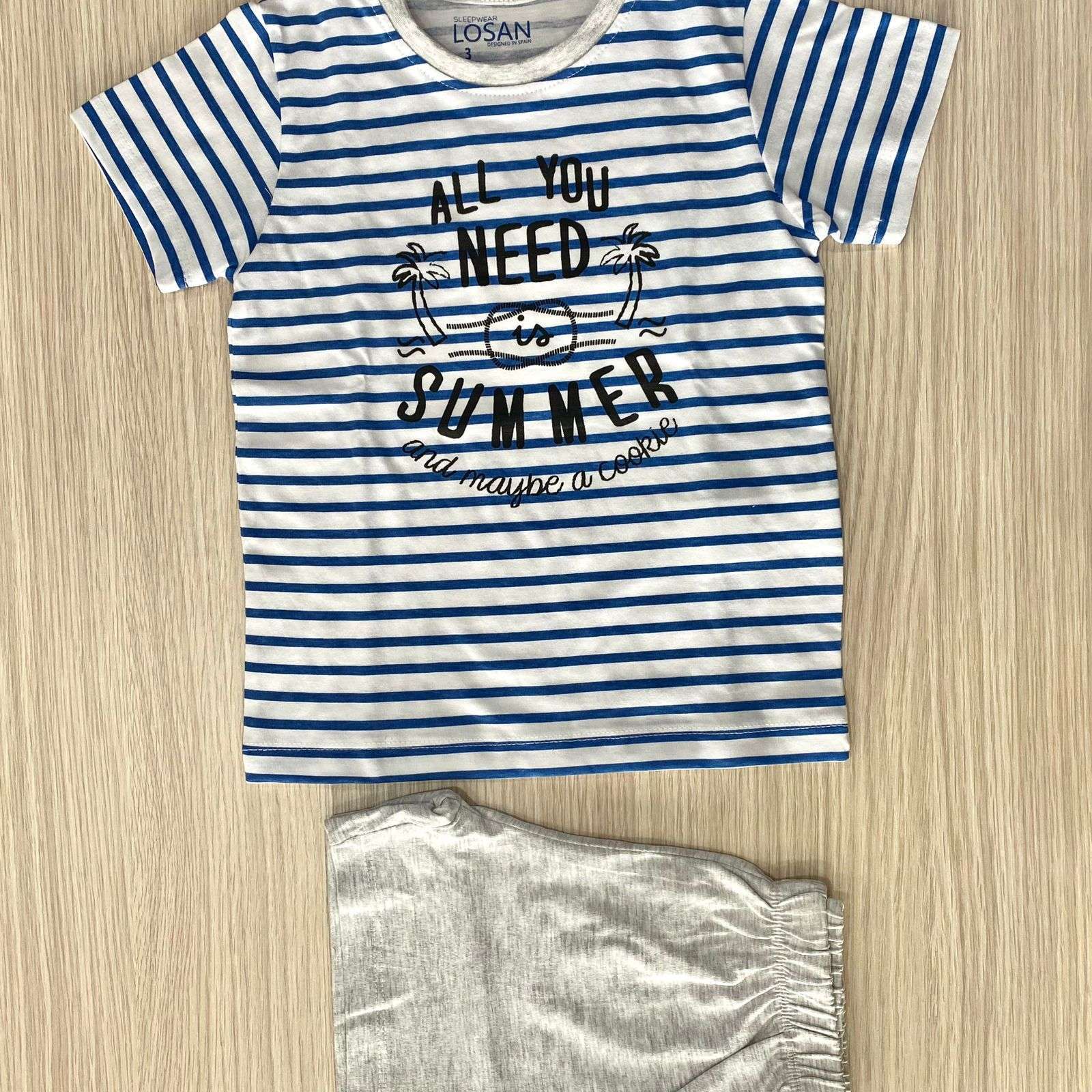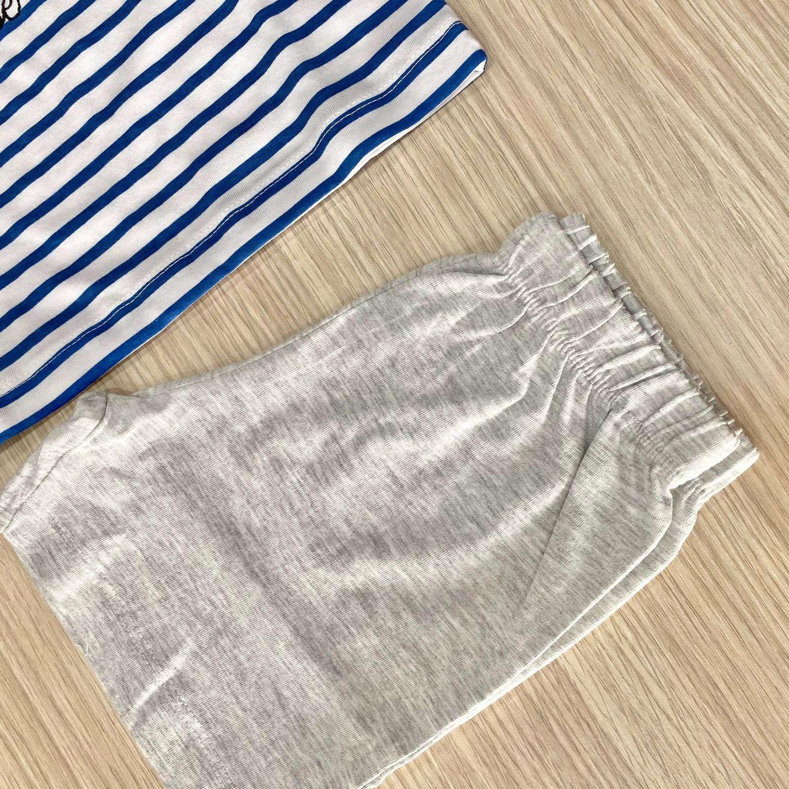 Pigiama due pezzi bambino in cotone, di colore grigio e blu, Pigiama composto da t-shirt e pantaloncino.