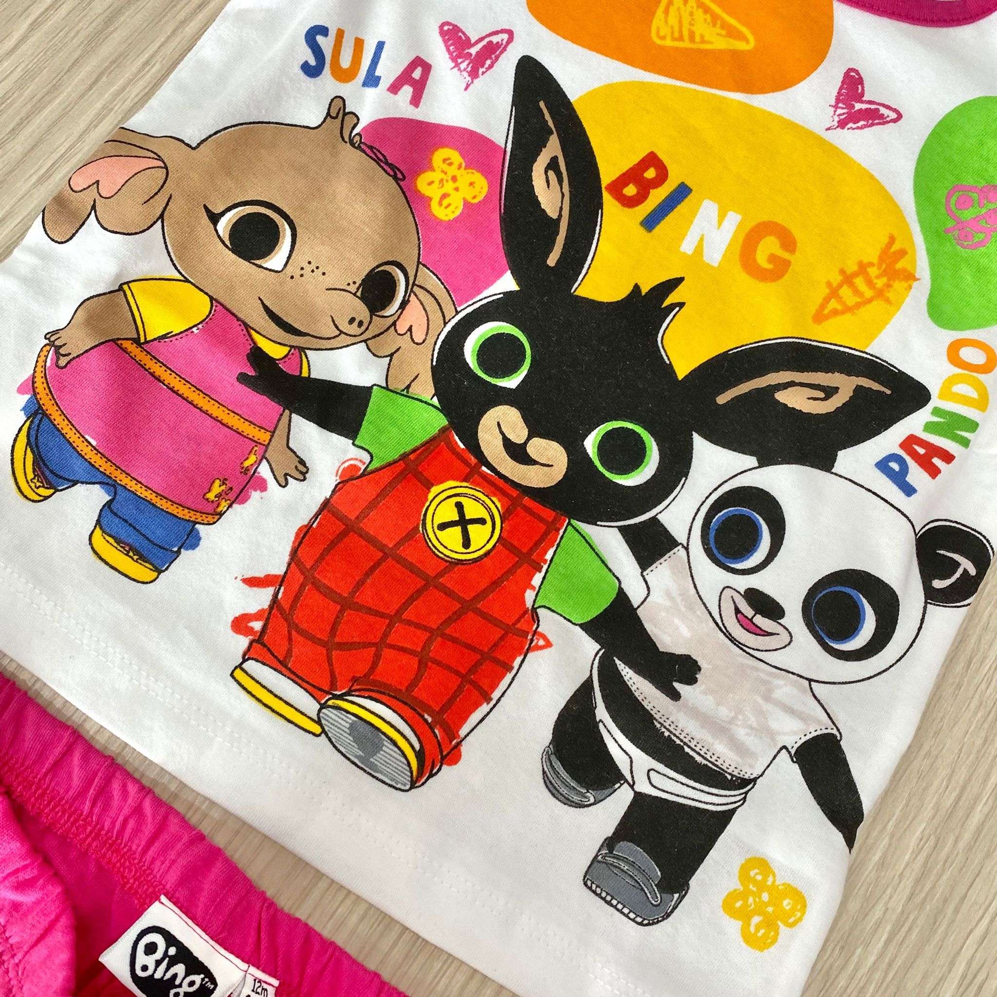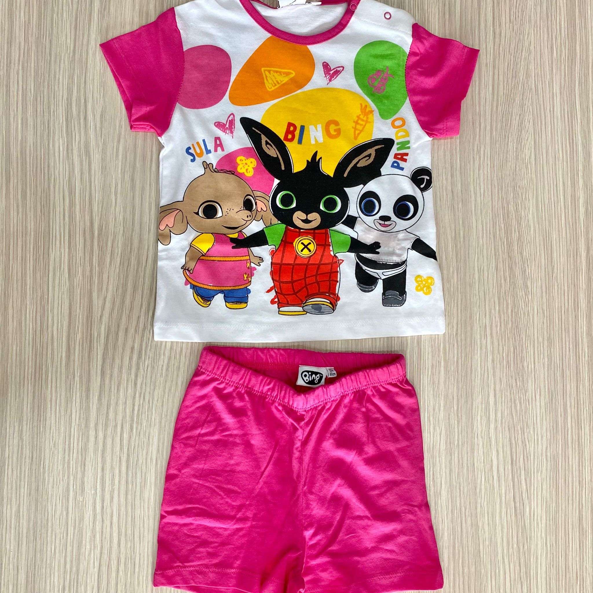 Pigiama corto bambina in cotone, di colore fucsia e bianco, con stampa Bing.
