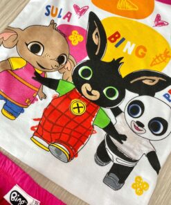 Pigiama corto bambina in cotone, di colore fucsia e bianco, con stampa Bing.