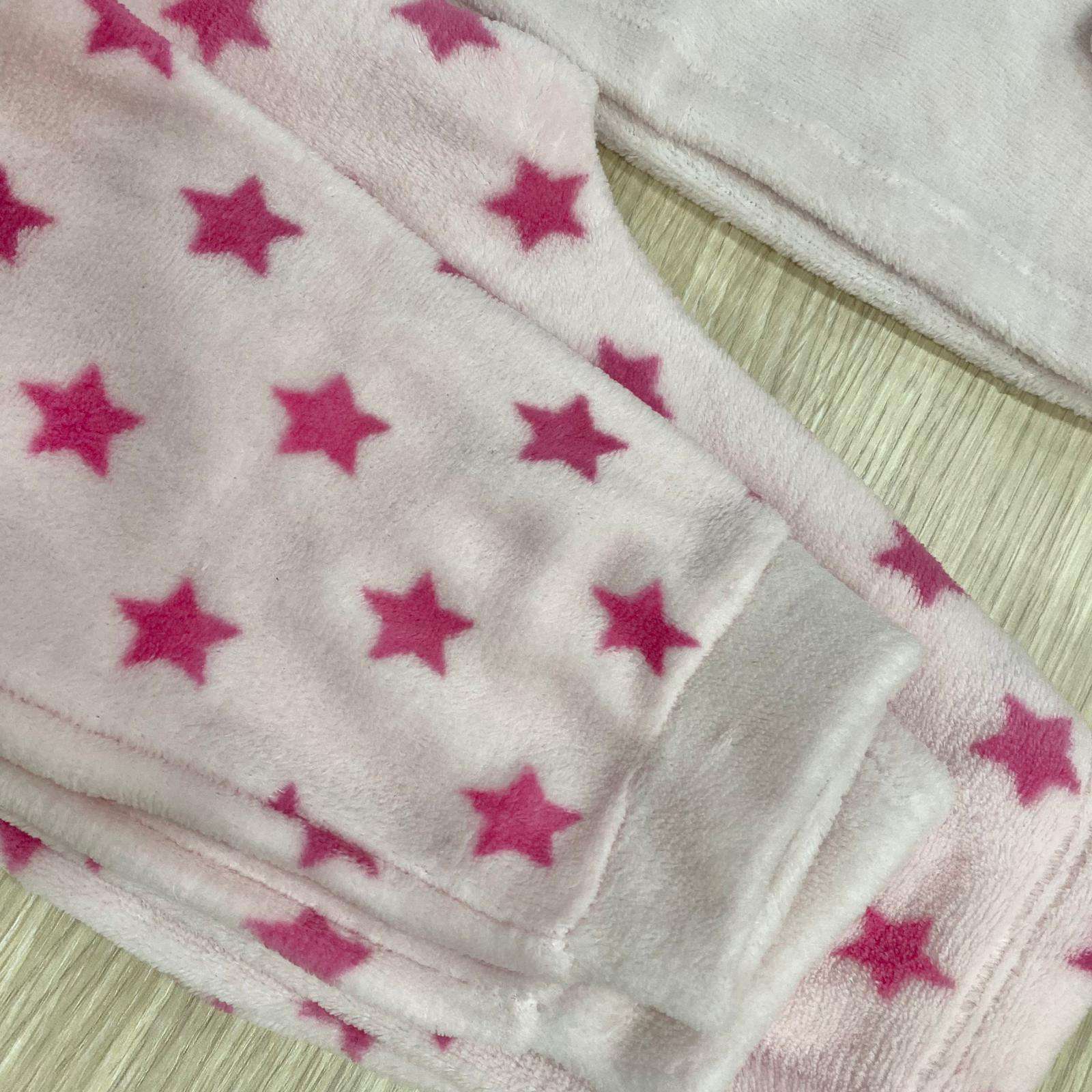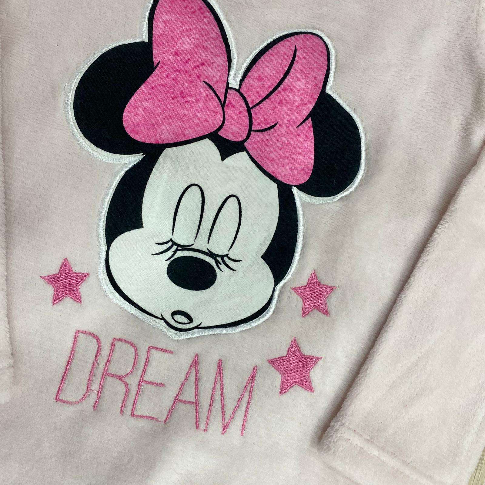 Pigiama bambina in pile, di colore rosa, con dettaglio Minnie di vari colori.