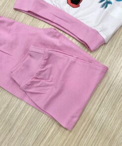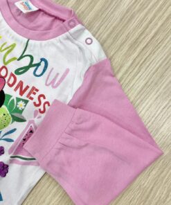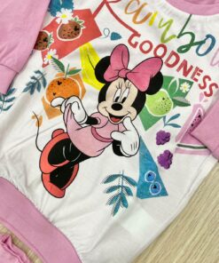Pigiama bambina in cotone, di colore bianco e rosa con stampa Minnie e dettagli di vari colori.