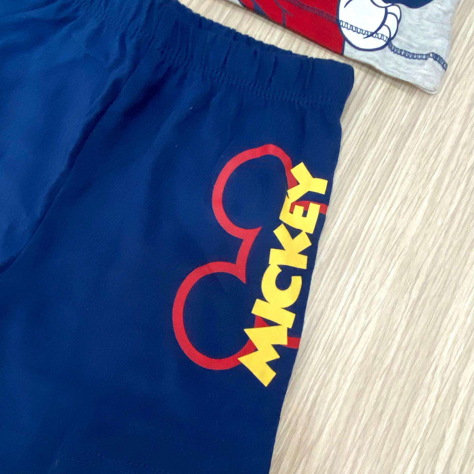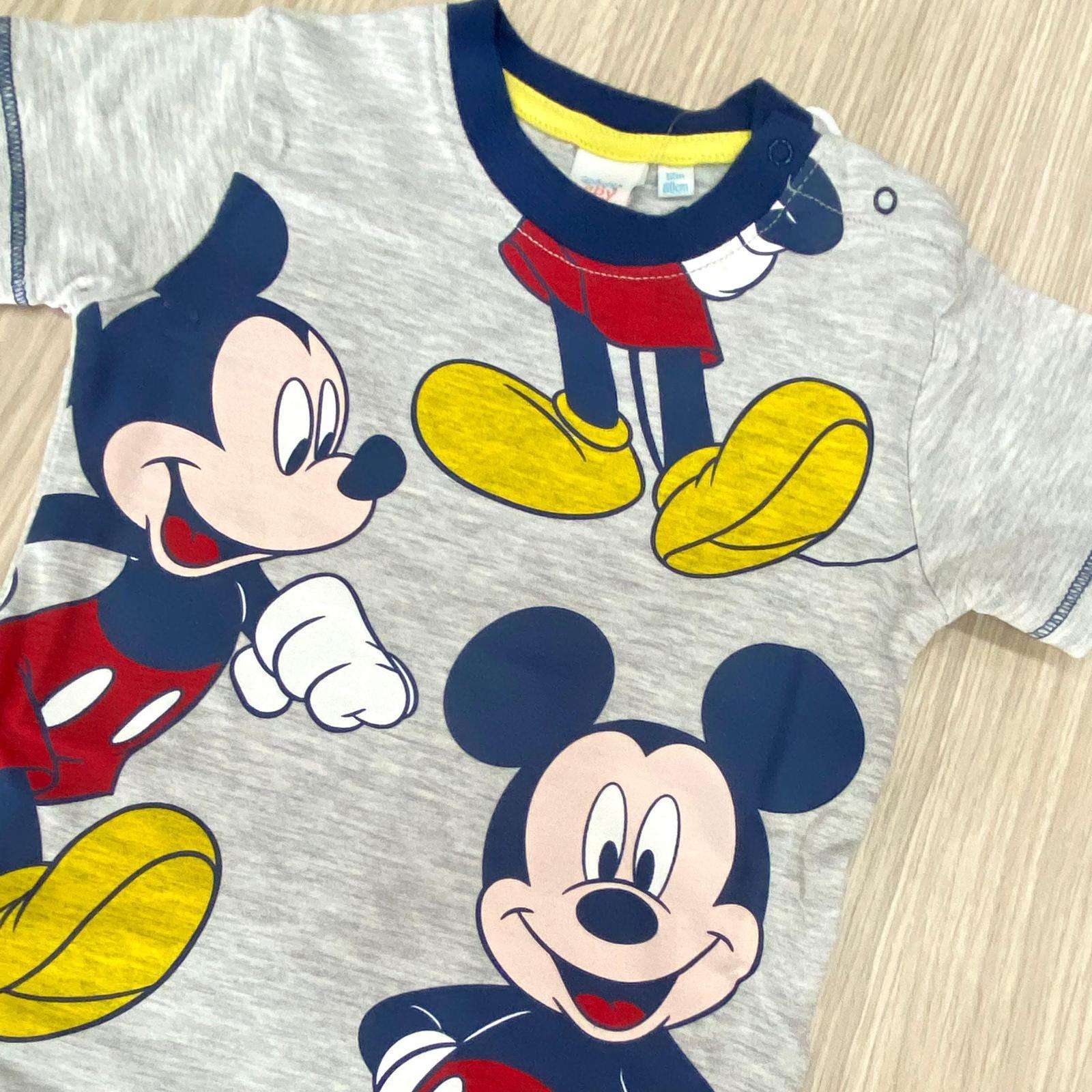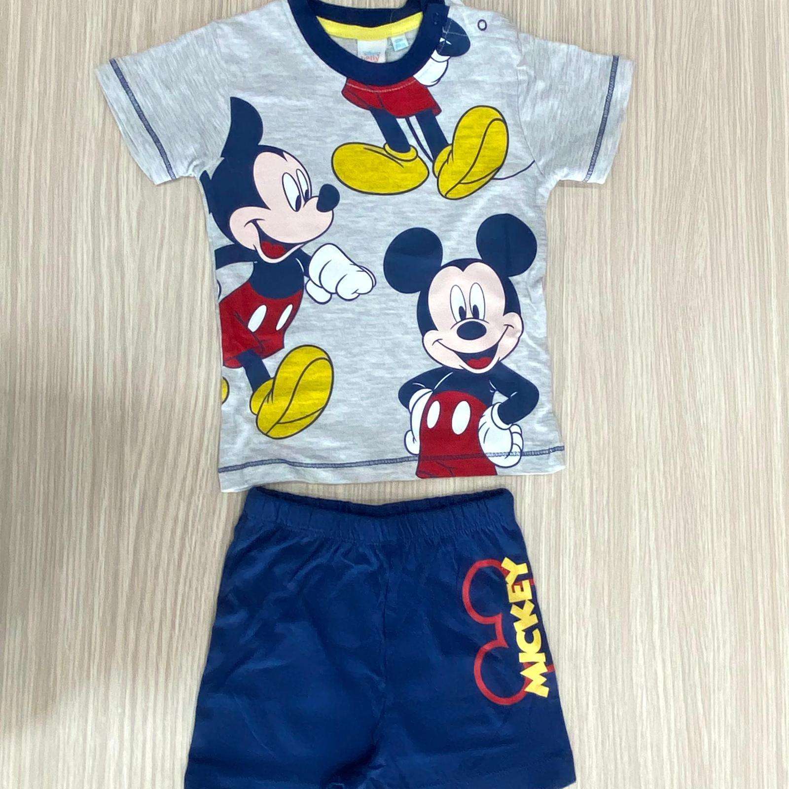 Pigiama corto bambino in cotone, di colore grigio e blu, con stampa Mickey Mouse.