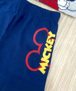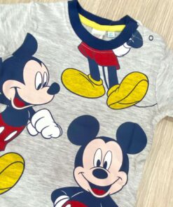 Pigiama corto bambino in cotone, di colore grigio e blu, con stampa Mickey Mouse.