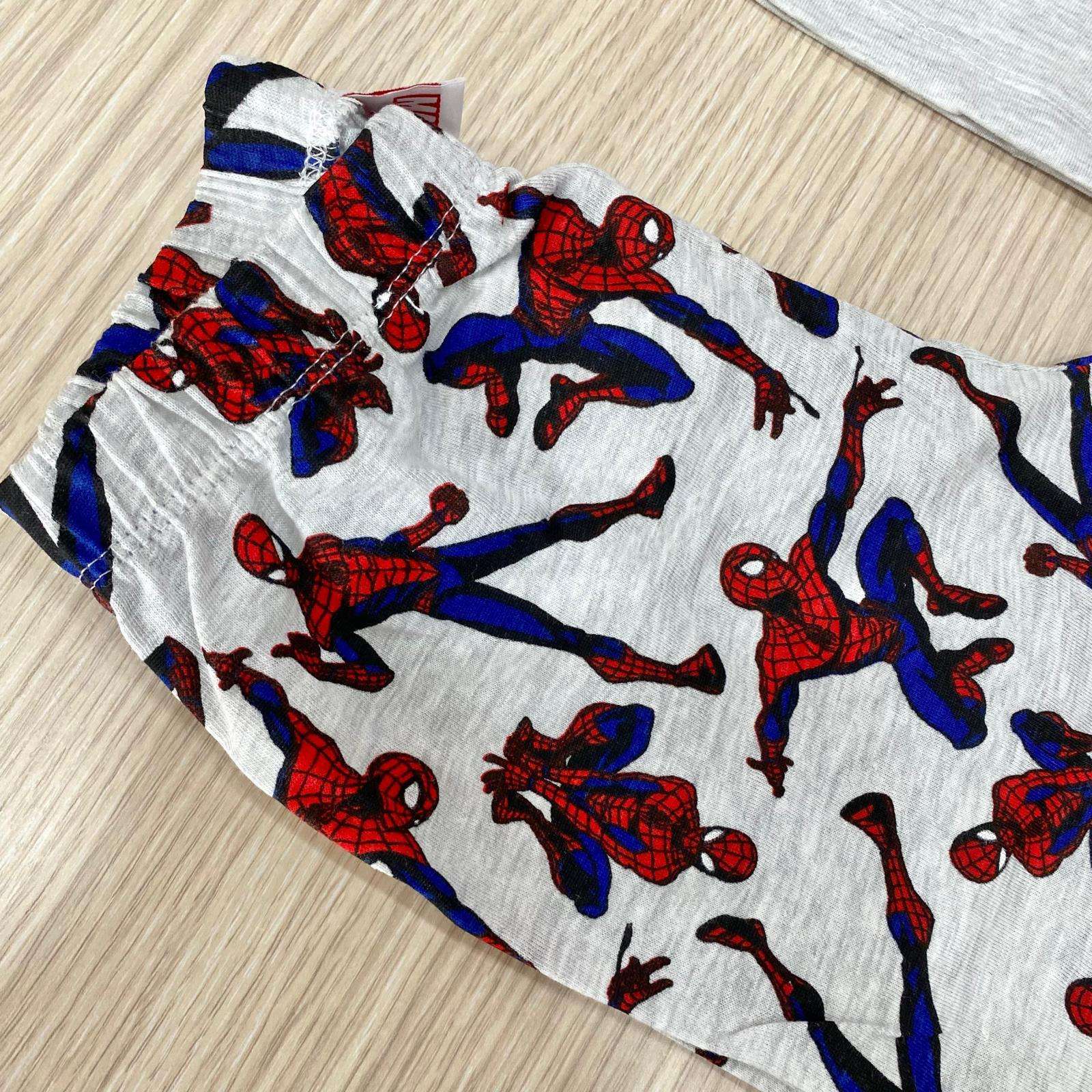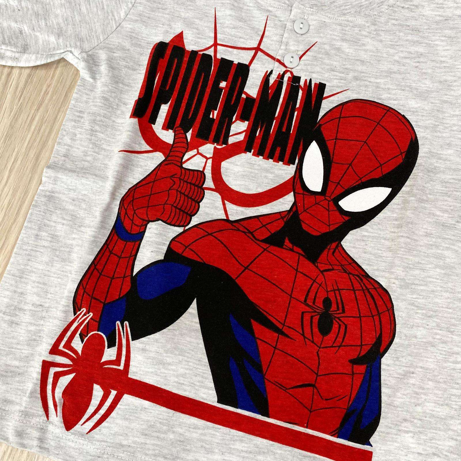 Pigiama corto bambino in cotone, di colore grigio e rosso, con stampa Spider-Man.