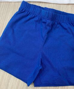 Pigiama due pezzi neonato/bambino in cotone, di colore blu e bianco, con stampa di vari colori.