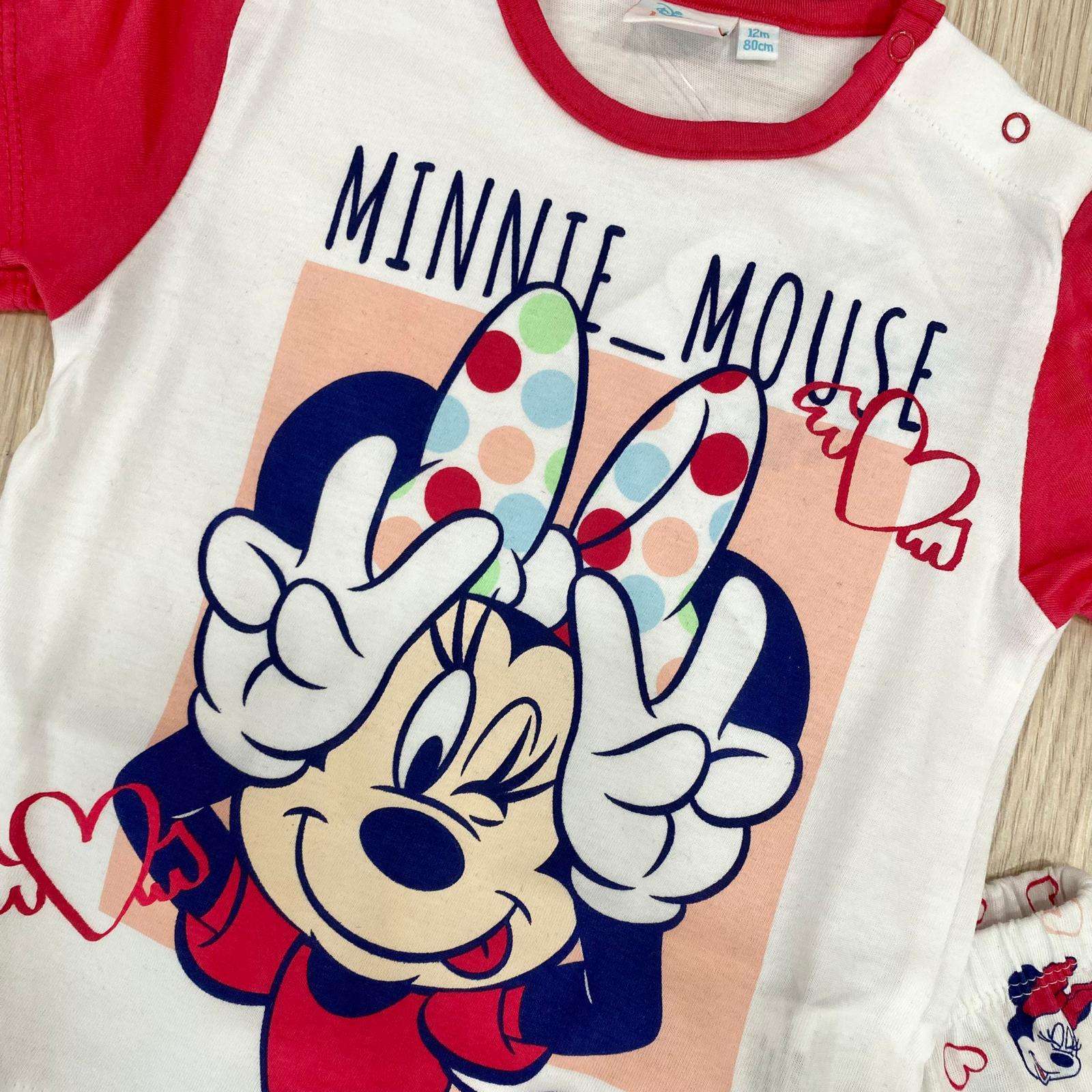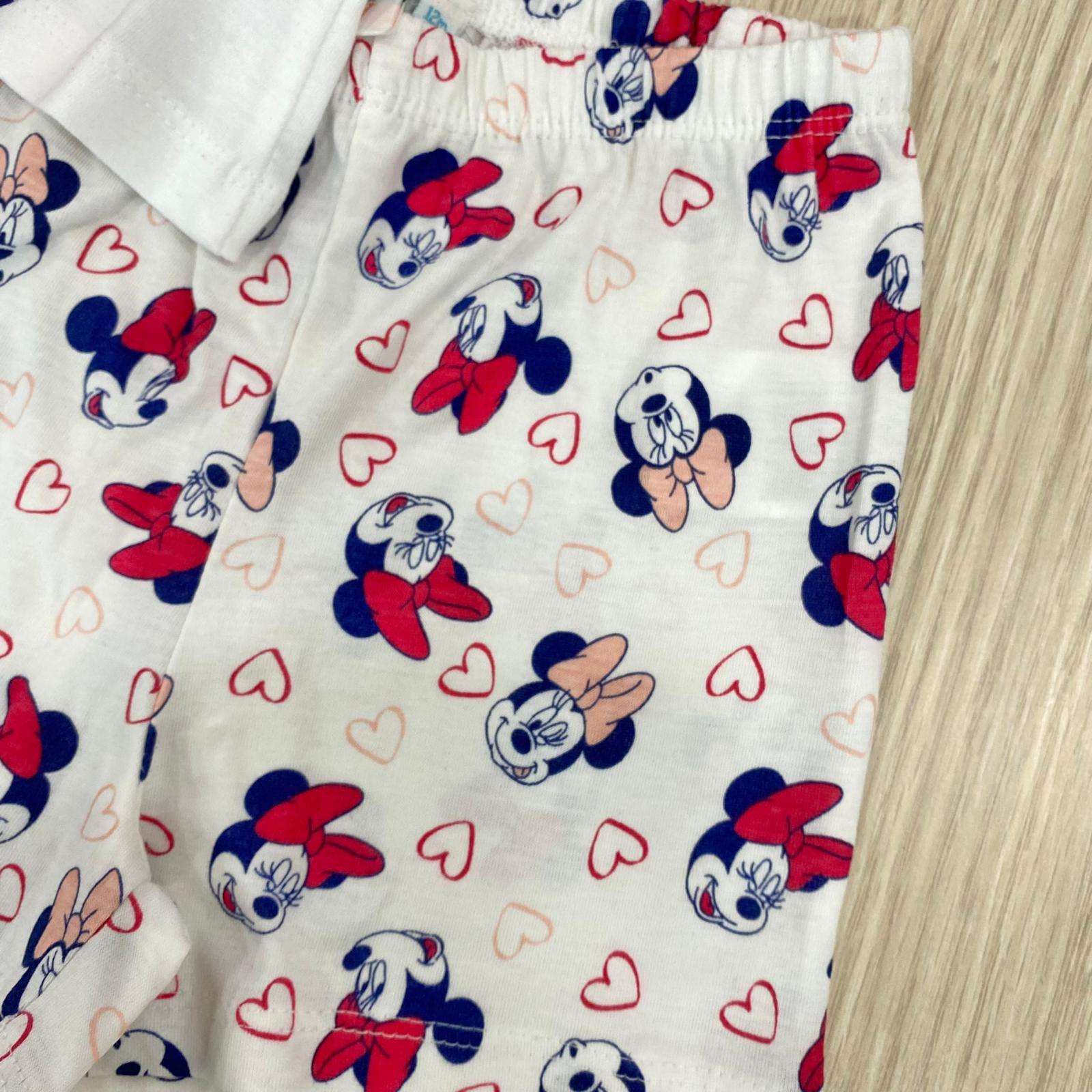 Pigiama corto due pezzi bambina, in cotone, di colore bianco e corallo, con stampa di vari colori.