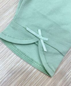 Pinocchietto bambina in cotone, di colore verde chiaro, con applicazione di fiocchetti.