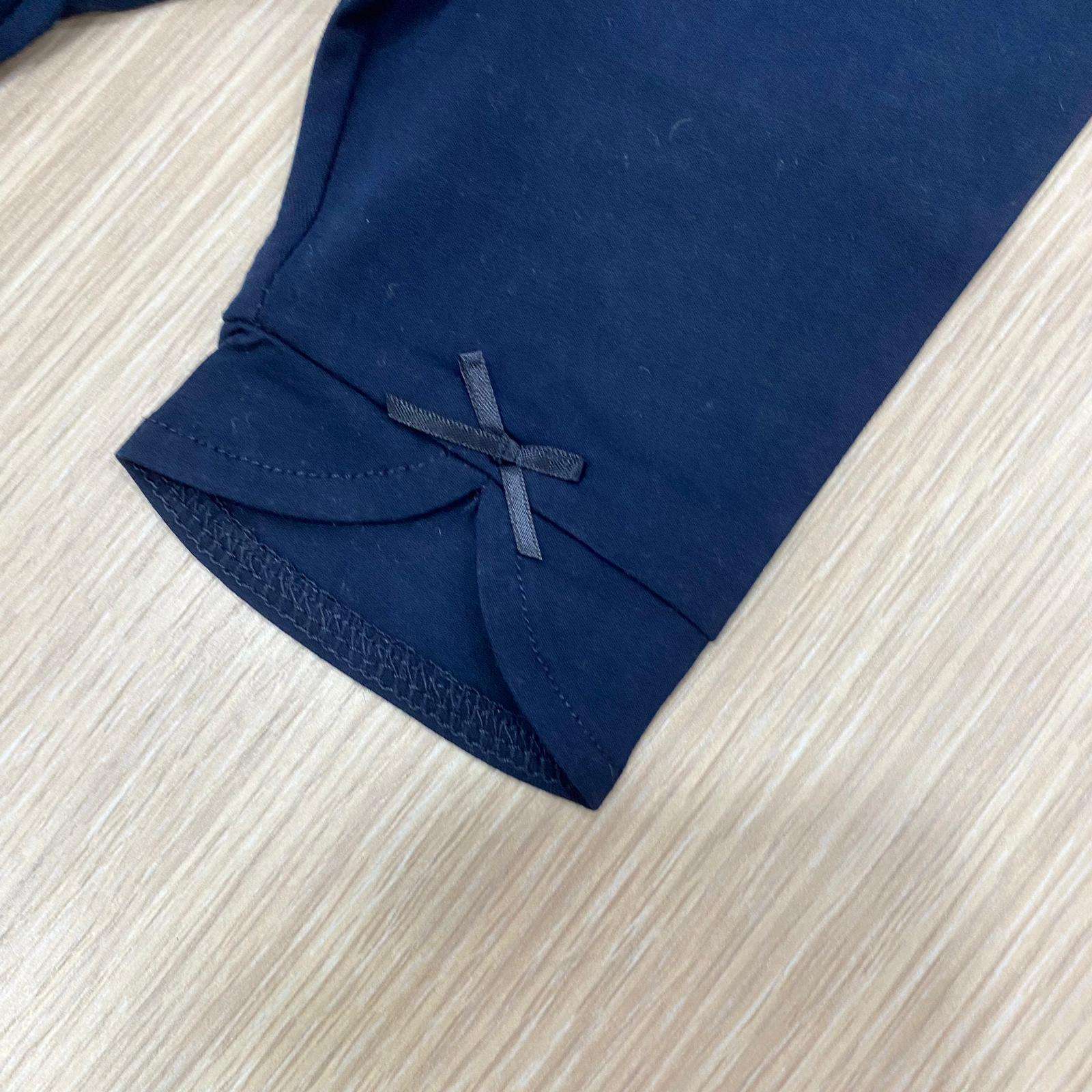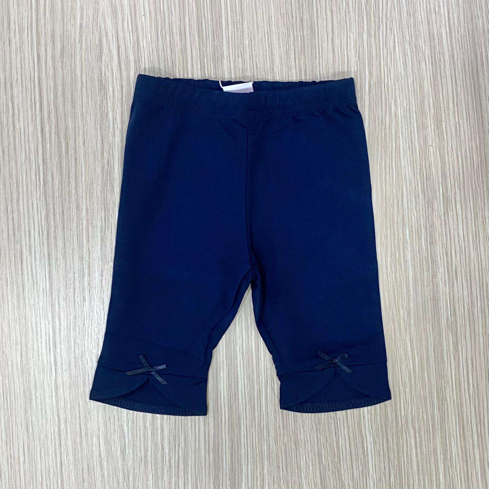 Pinocchietto bambina in cotone, di colore blu, con applicazione di fiocchetti.