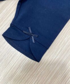 Pinocchietto bambina in cotone, di colore blu, con applicazione di fiocchetti.