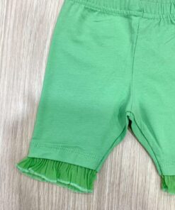 Pinocchietto bambina in cotone, di colore verde, con applicazione di organza.