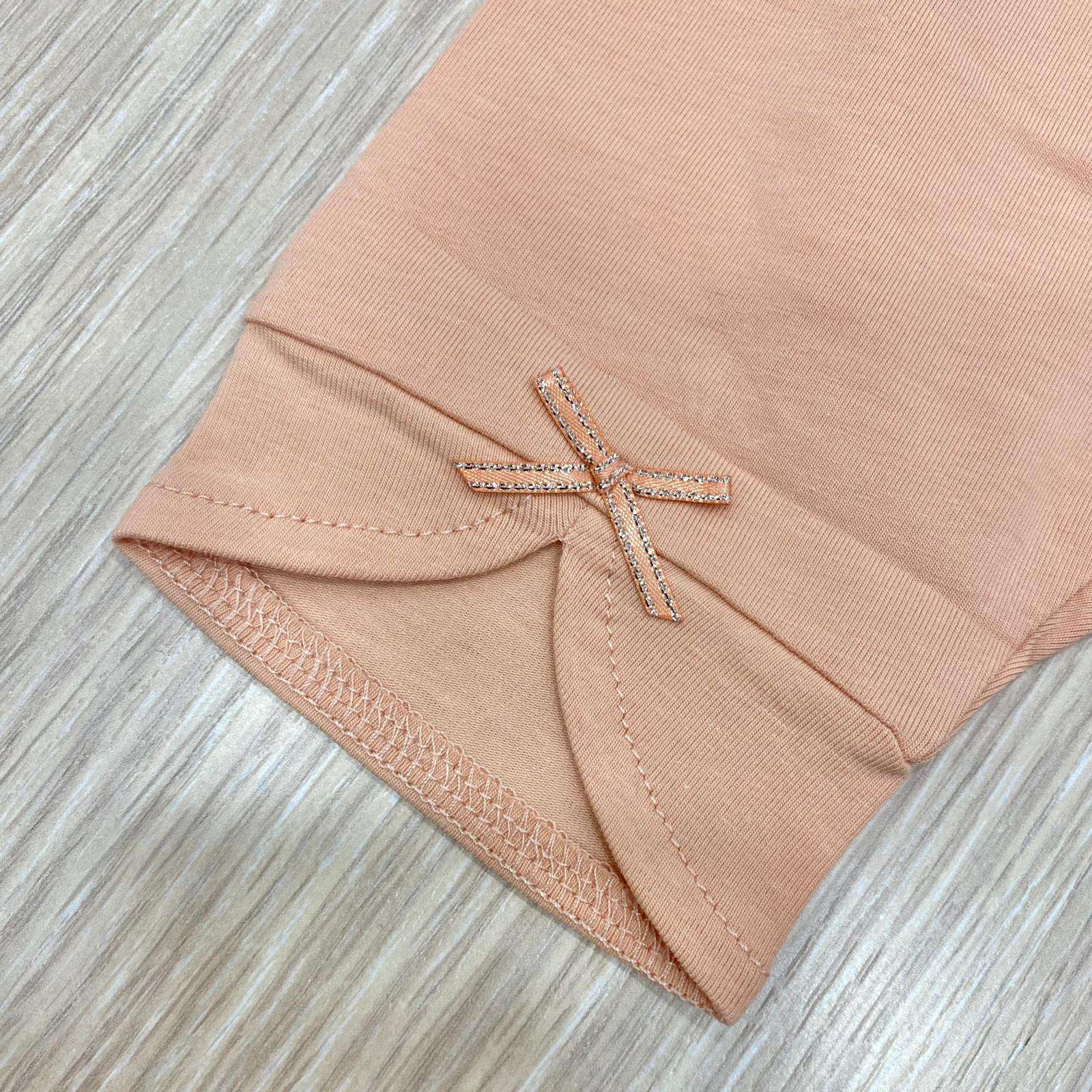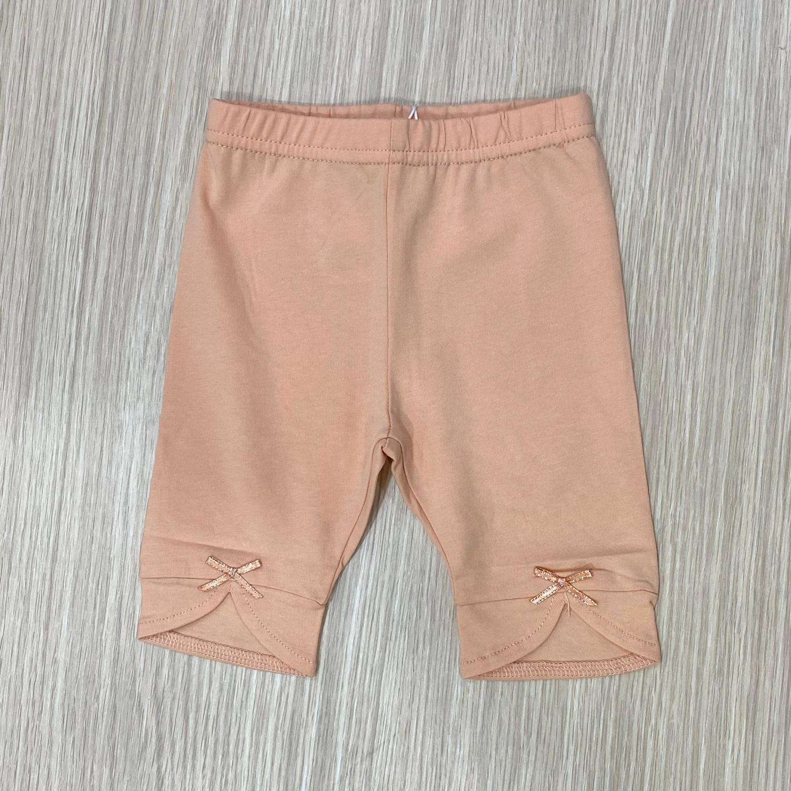 Pinocchietto bambina in cotone, di colore pesca, con applicazione di fiocchetti.