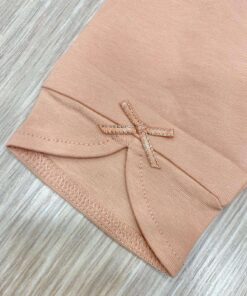 Pinocchietto bambina in cotone, di colore pesca, con applicazione di fiocchetti.