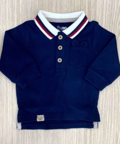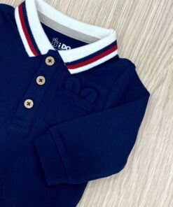 Polo neonato/bambino in caldo cotone, di colore blu, con dettagli di colore bianco e rosso, con taschino.