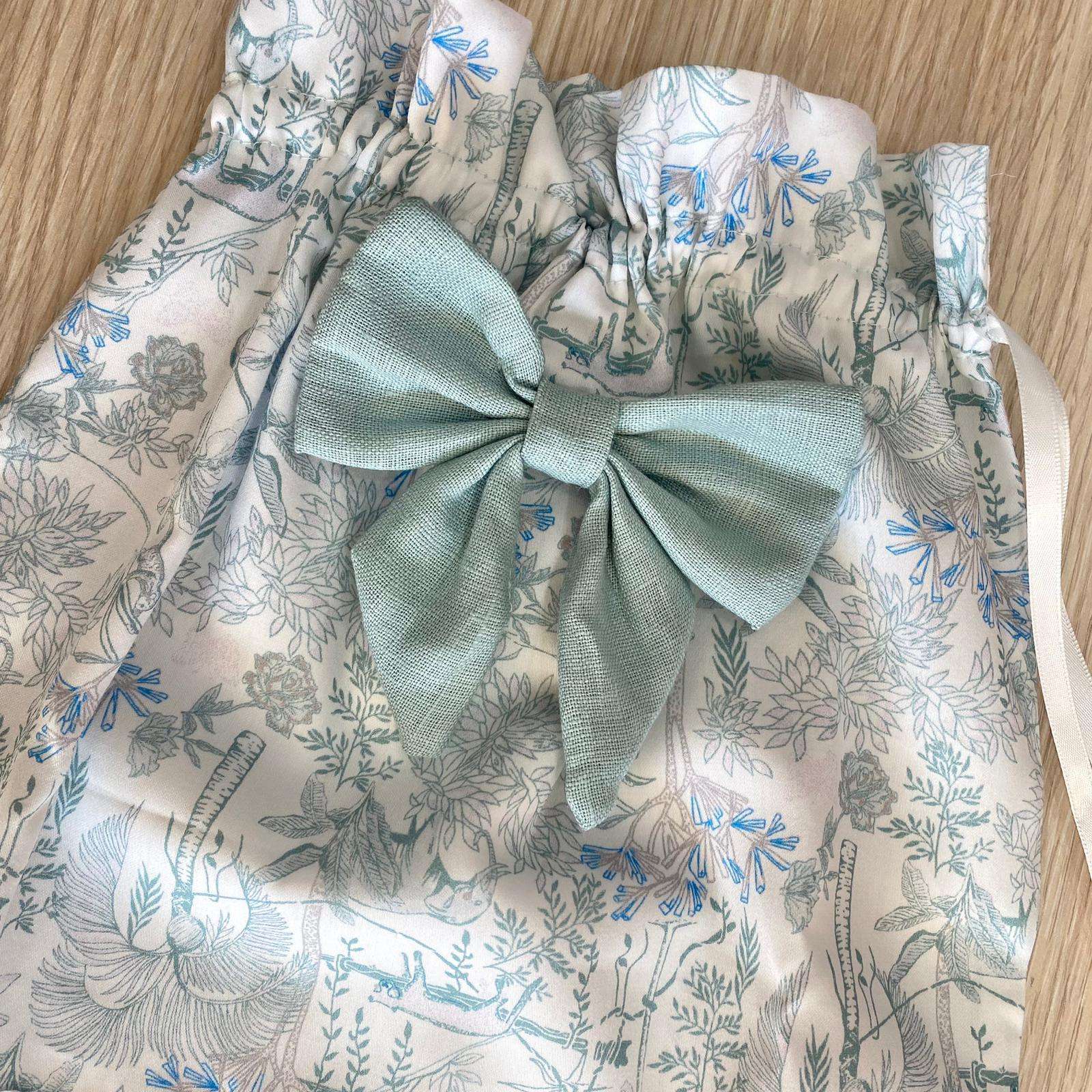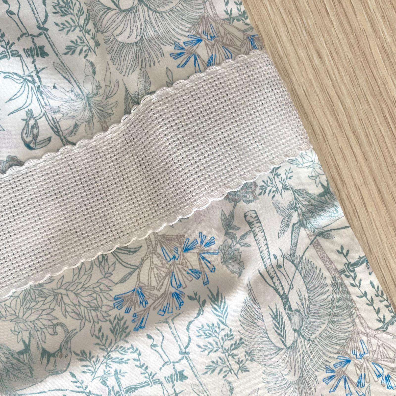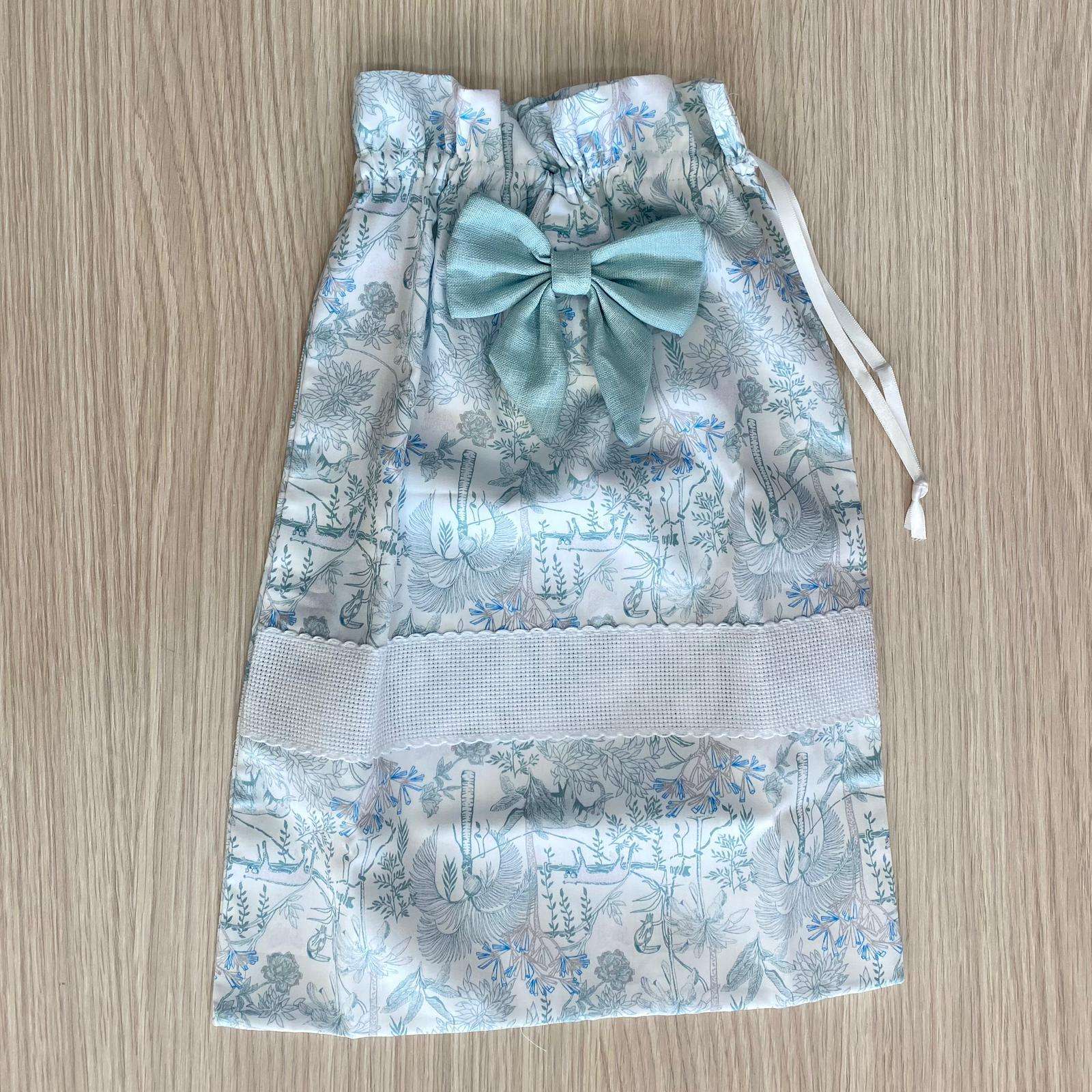 Sacco nascita neonato in cotone, di colore bianco e verde, con applicazione di fiocco in tessuto, con tela aida da ricamo.
