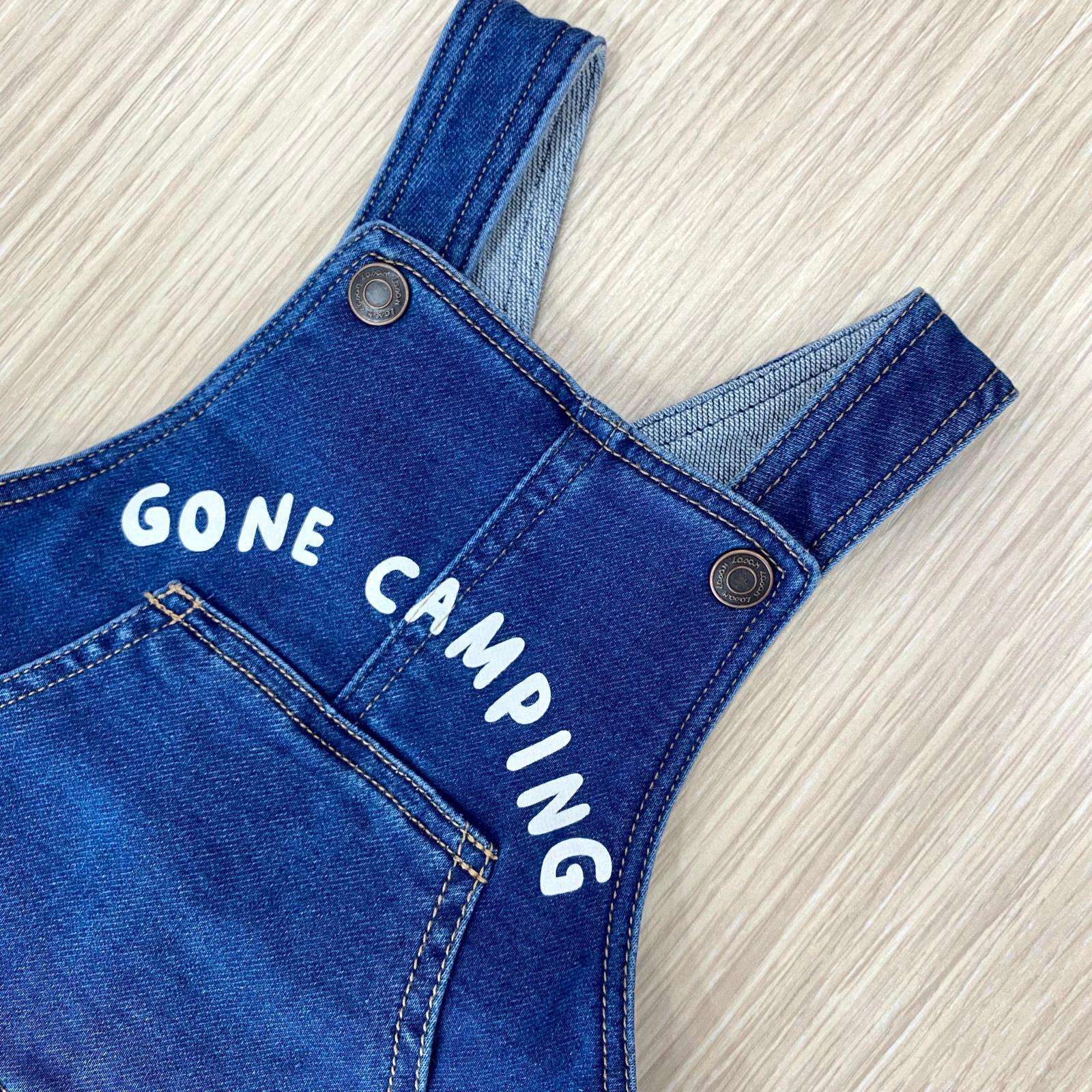 Salopette bambino in denim, in cotone, con bretelline regolabili con due bottoncini.