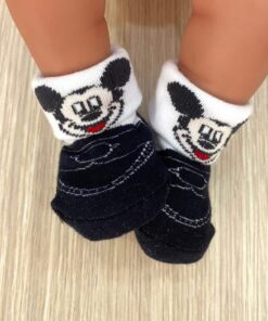Set calzino in caldo cotone e papillon neonato di colore blu notte e bianco, con dettaglio di ricamo Mickey Mouse.