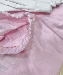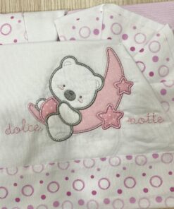 Set lenzuolino culla/carrozzina neonata in cotone, di colore rosa e bianco, con disegno in rilievo.